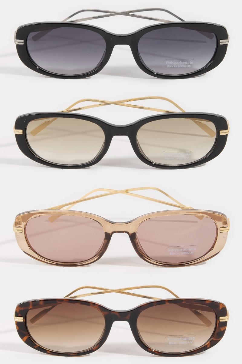 - This set of sunglasses brings a unique retro oval frame sunglasses style. Unveil modern elegance with this subtly intricate set of sunglasses.