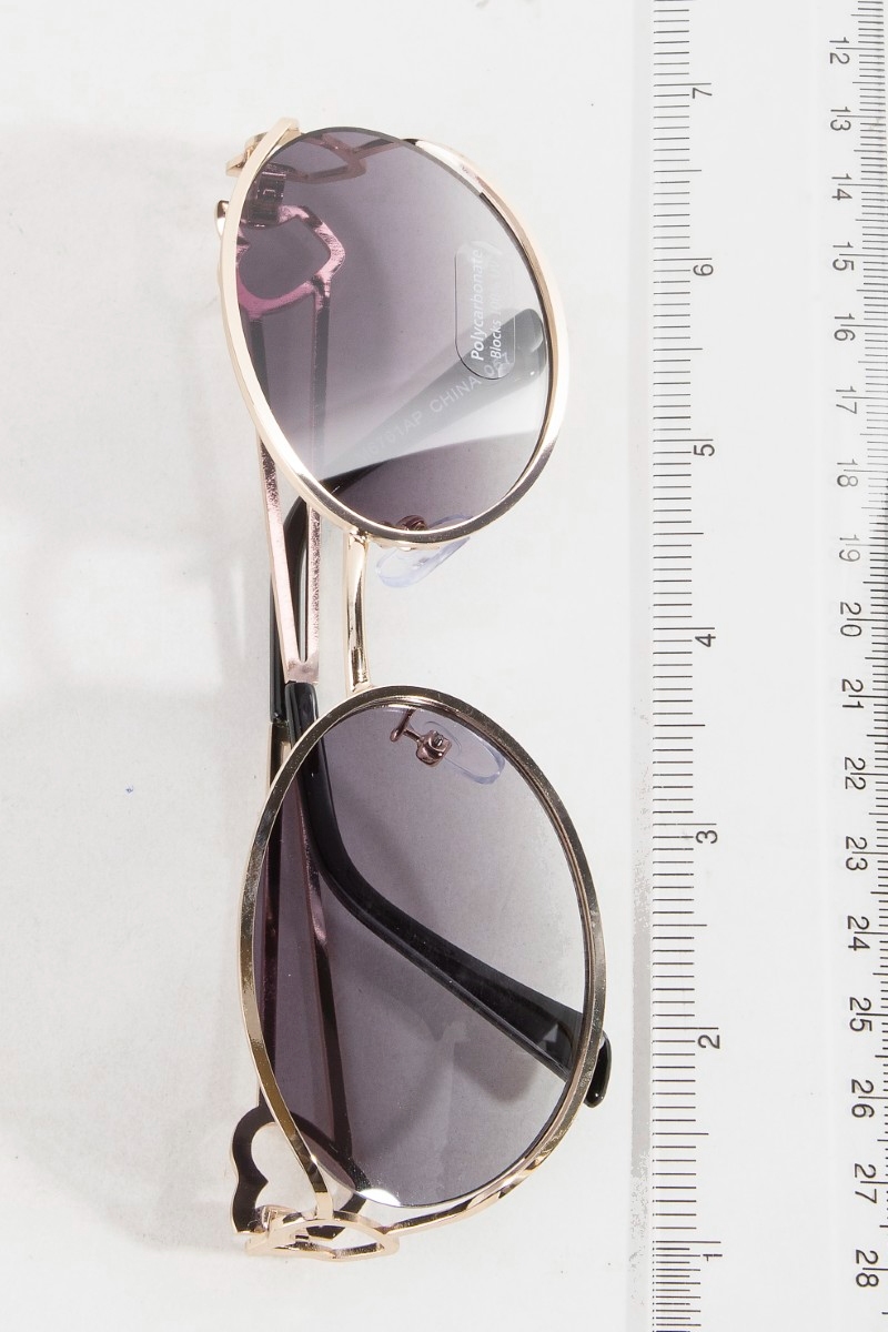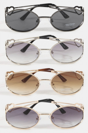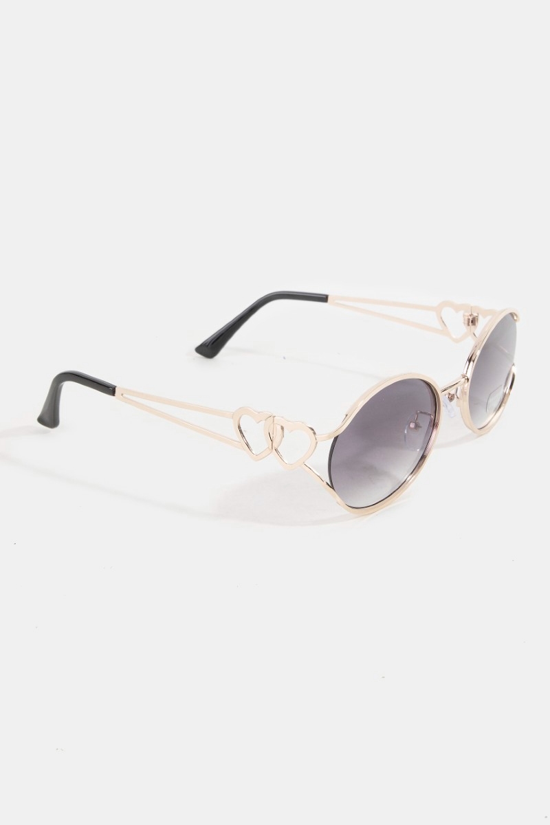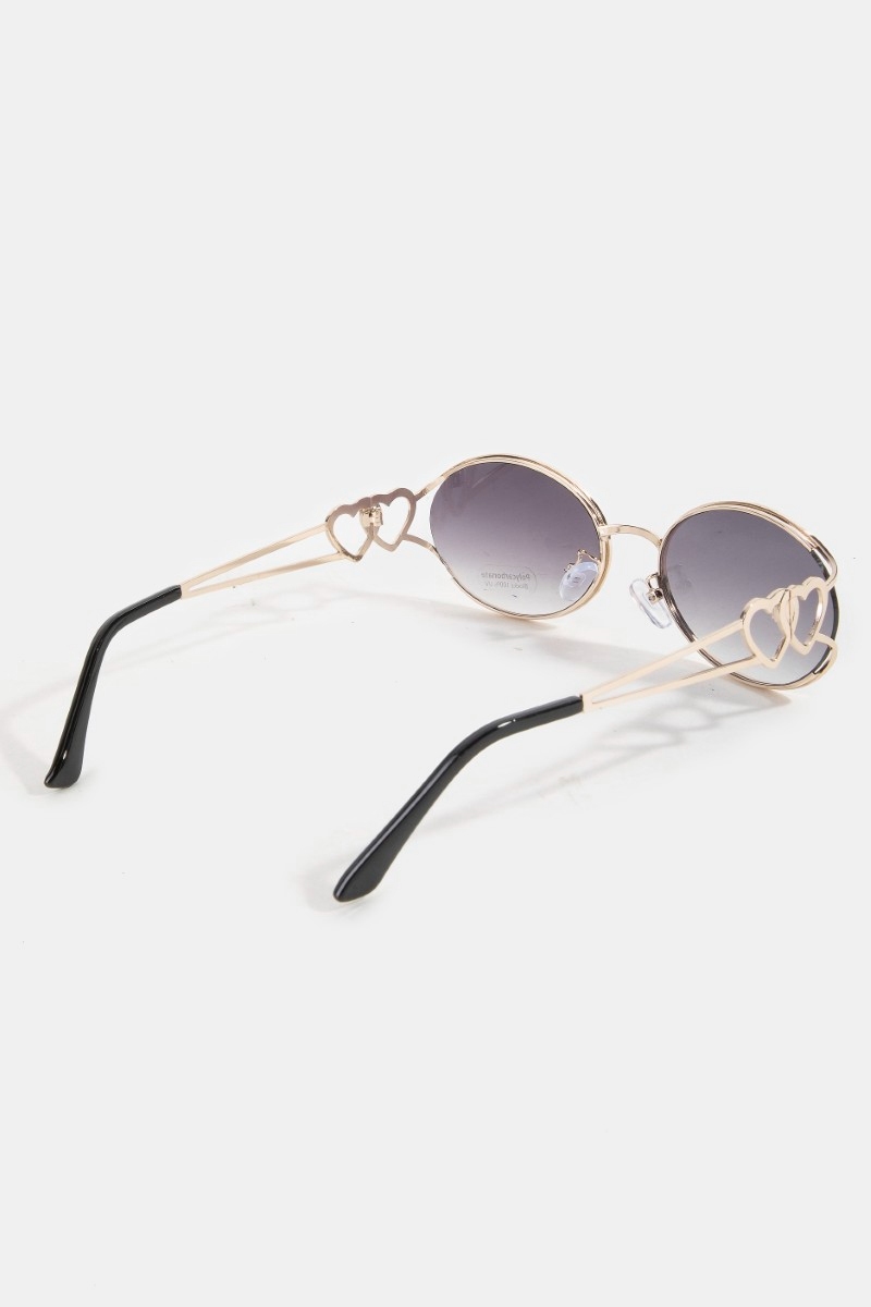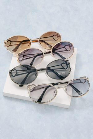 - This set of sunglasses showcases a unique round oval heart detail sunglasses set style. Experience refined sophistication with this understated yet stylish piece.