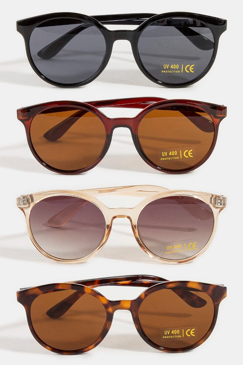 - This set of sunglasses introduces a stunning assorted round lens sunglasses set style. Celebrate individual style with this versatile, eye-catching addition.