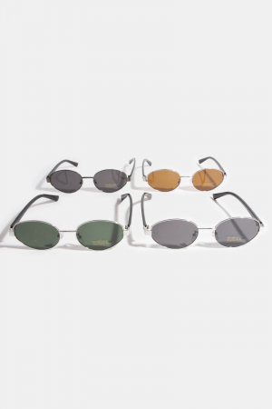 - This set of sunglasses brings a luxurious metal frame oval lens sunglasses set style. Discover the perfect balance of subtlety and flair as this set of sunglasses effortlessly completes your look.