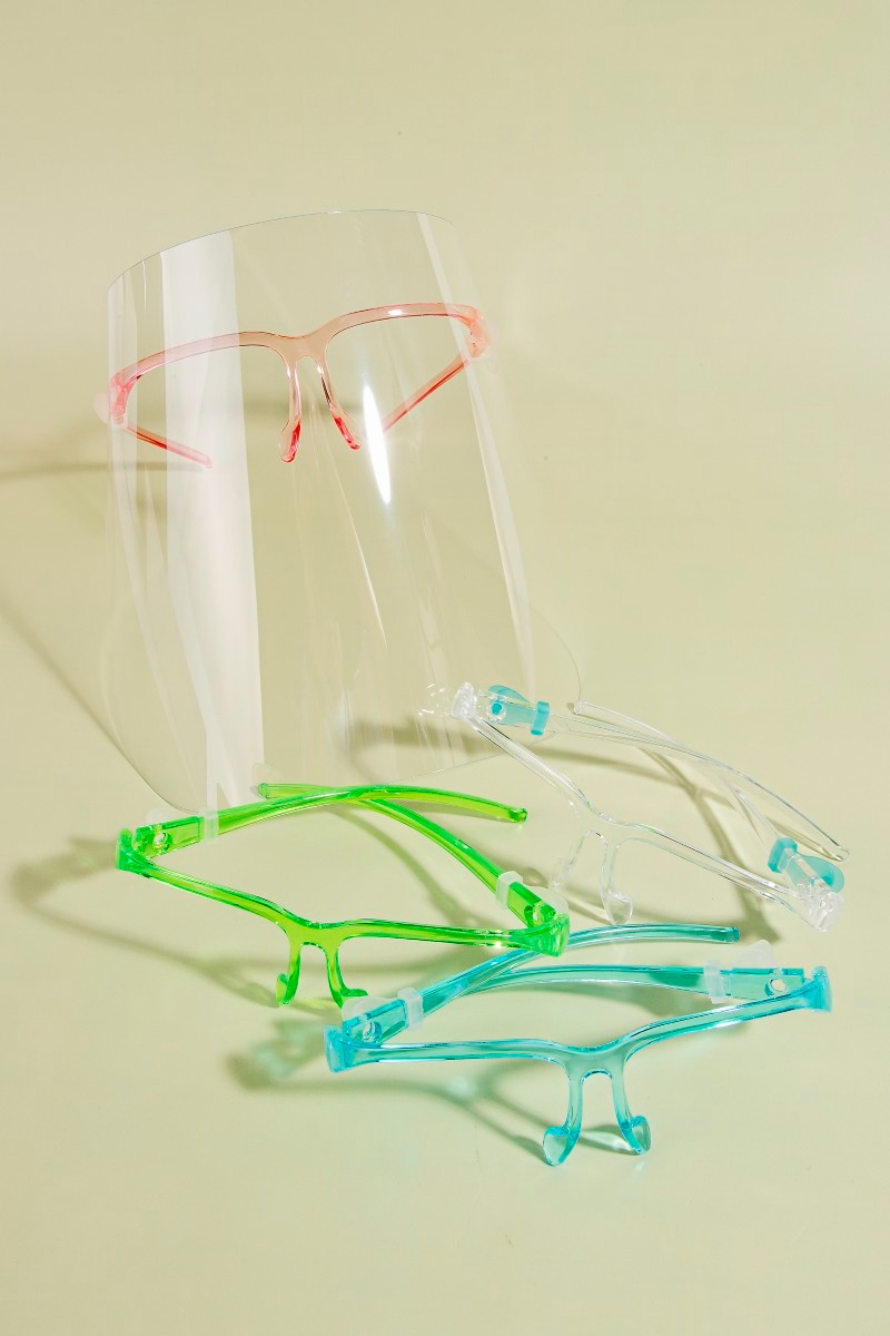 - This set of sunglasses showcases a unique acetate frame face shield glasses style. Experience a burst of creativity in accessorizing as this piece effortlessly sets the tone for your unique style.