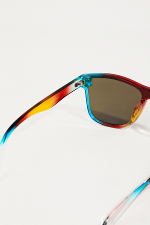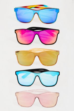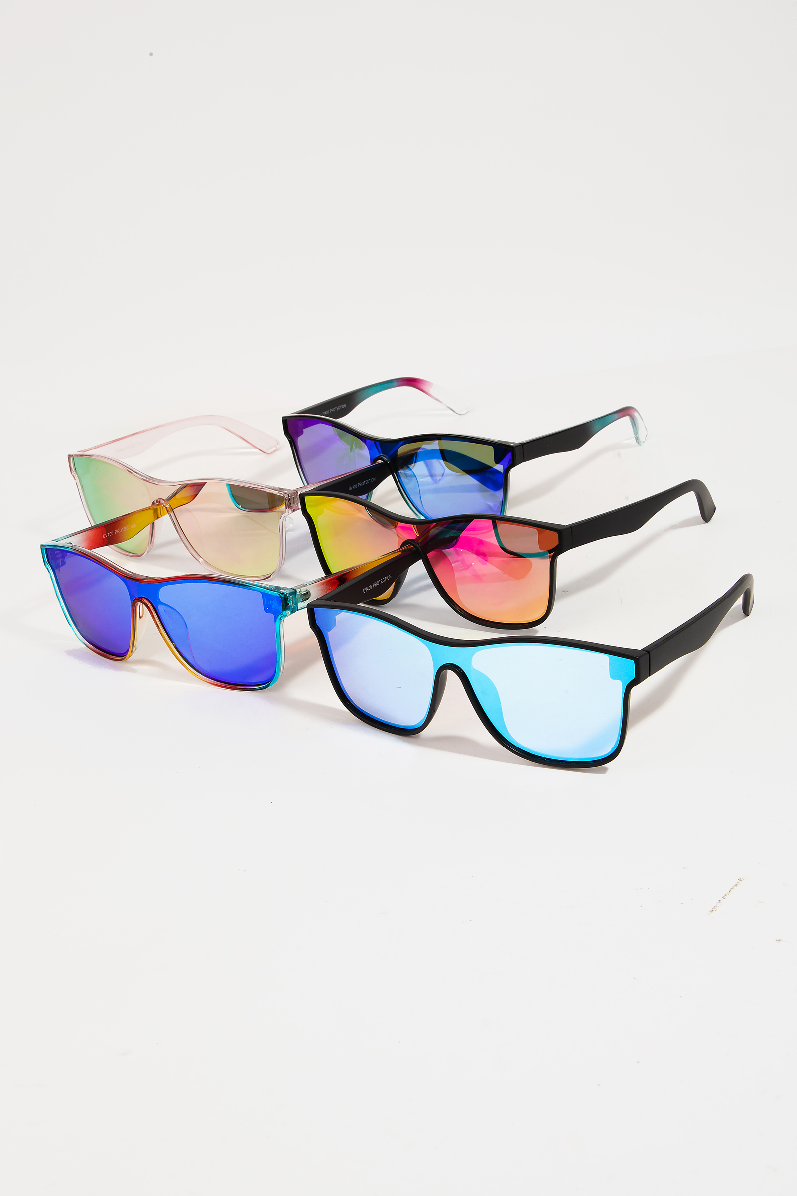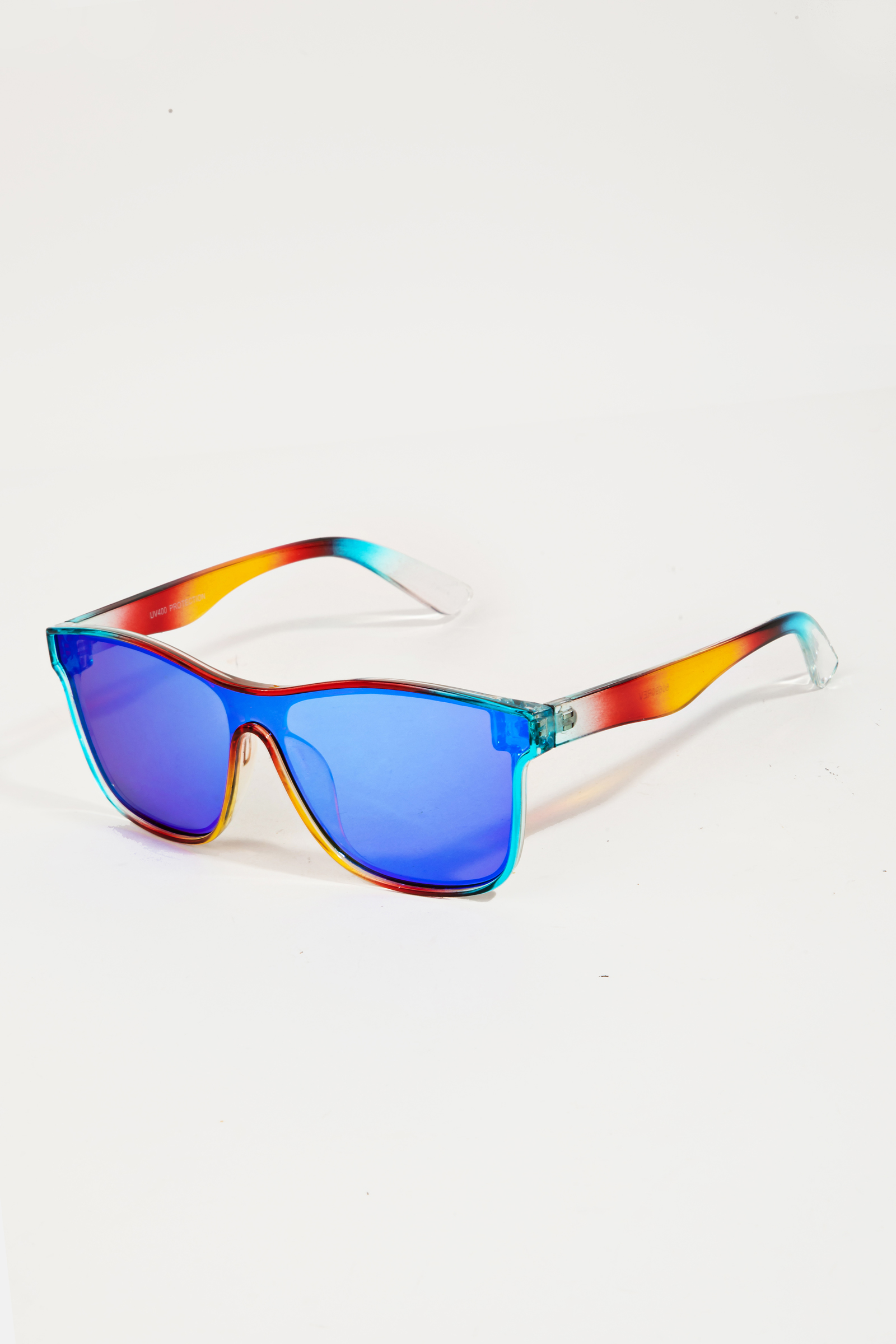 - This sunglasses brings a stunning multi color acetate shield set style. Immerse yourself in fashion finesse with this statement accessory.