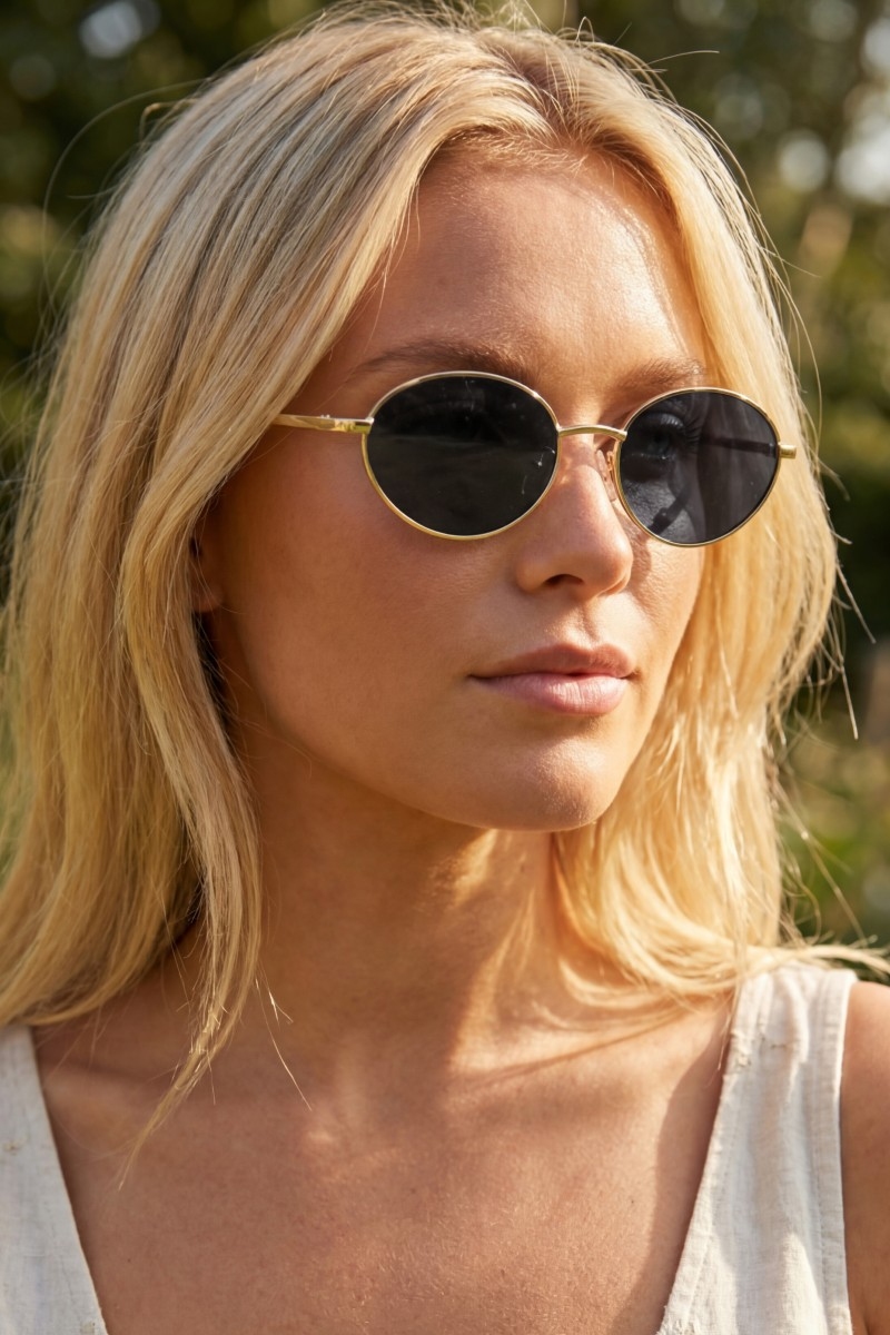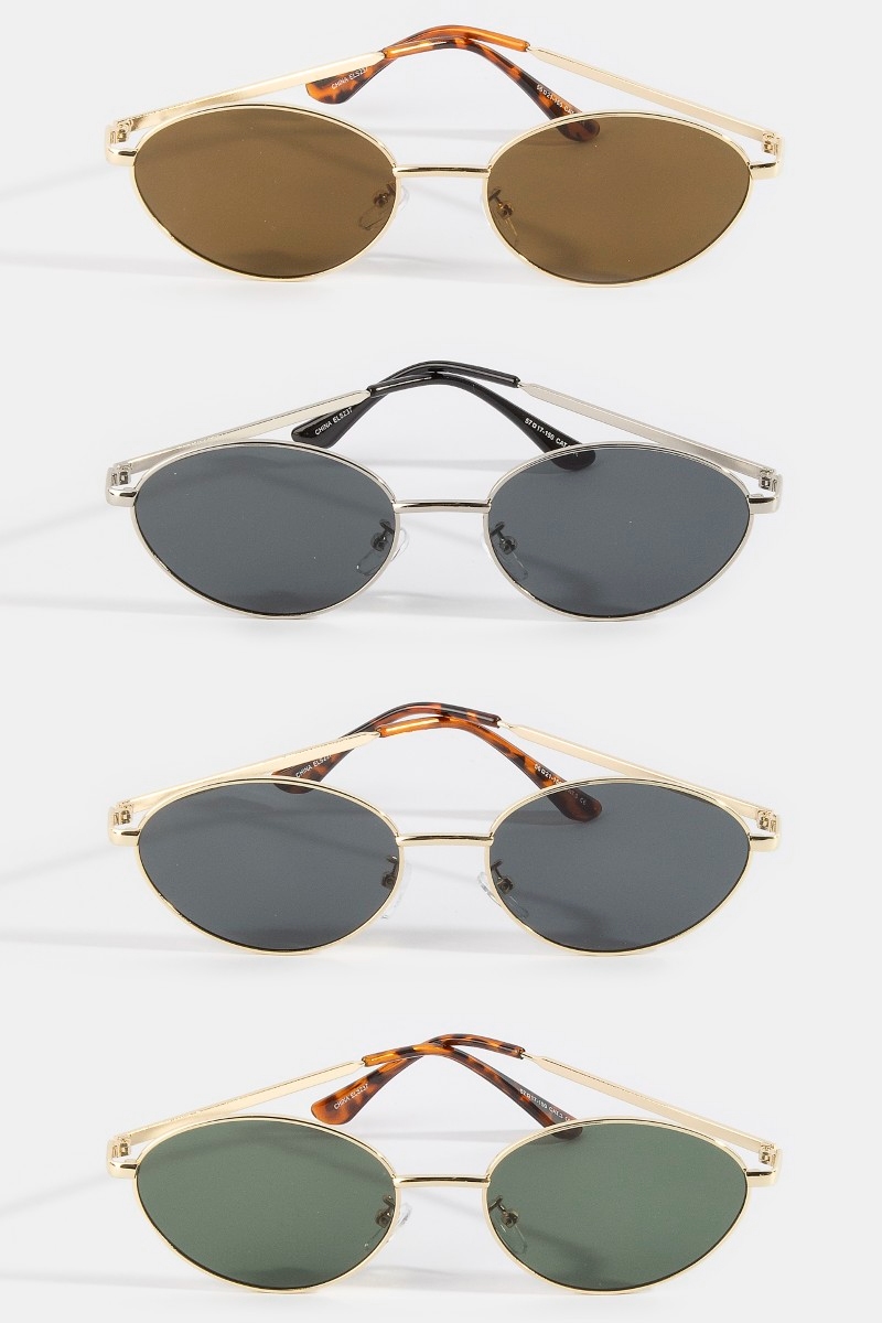 - This set of sunglasses showcases a timeless slim oval cat eye metal double bridge sunglasses style. Unveil a new dimension of sophistication as this set of sunglasses effortlessly enhances the elegance of your ensemble.