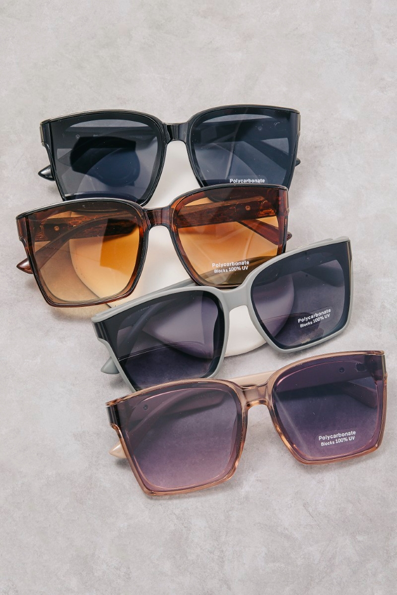 - This set of sunglasses introduces a stunning large square lens sunglasses set style. Savor the allure of detailed craftsmanship in this exquisite set of sunglasses.