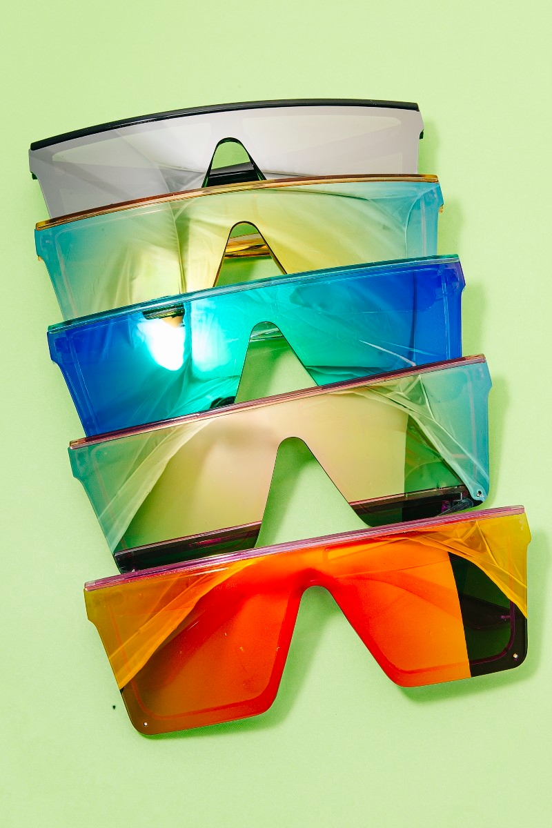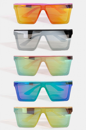 • This set of sunglasses brings a unique large square shield lens sunglasses set style. Delight in the intricate details that make this set of sunglasses an essential element in expressing your fashion identity.