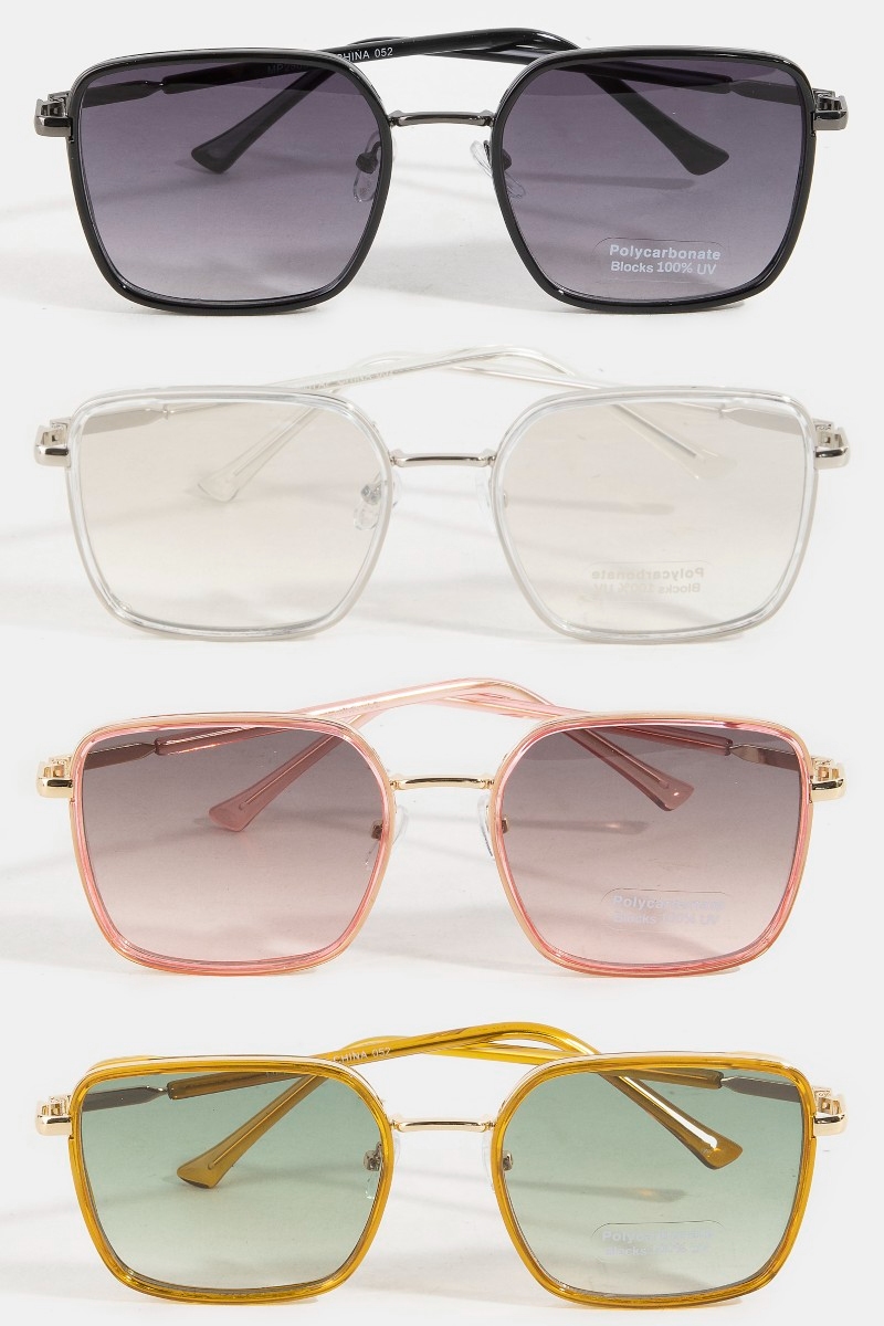 - This set of sunglasses displays a fashionable thin frame square sunglasses set style. Explore a refined sense of style with this set of sunglasses, seamlessly elevating the chic factor of your look.