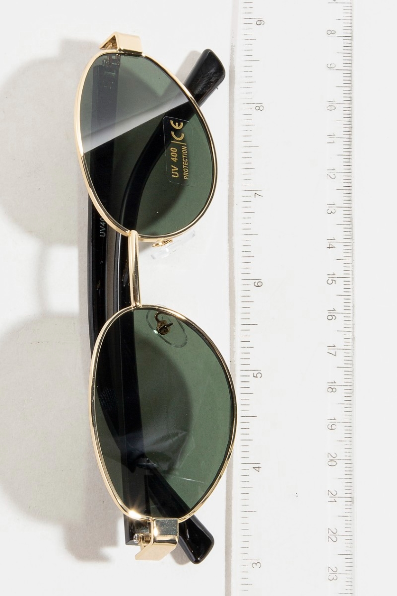 - This set of sunglasses features a fashionable twelve piece assorted oval metallic frame sunglasses style. Indulge in the allure of exquisite craftsmanship as this set of sunglasses effortlessly adds a touch of luxury to your attire.