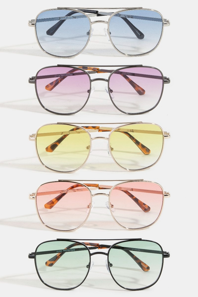 - This set of sunglasses adds a modern twelve piece double bridge metal frame sunglasses set style. Elevate your ensemble with this set of sunglasses that effortlessly captures the essence of refined fashion.
