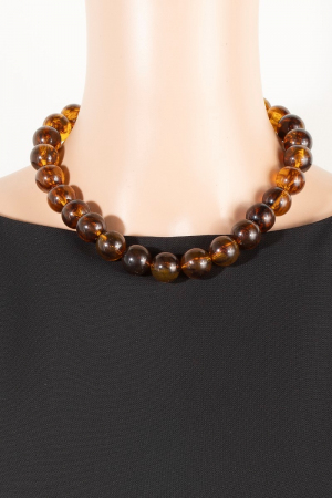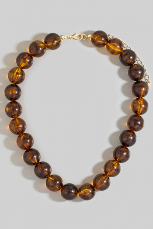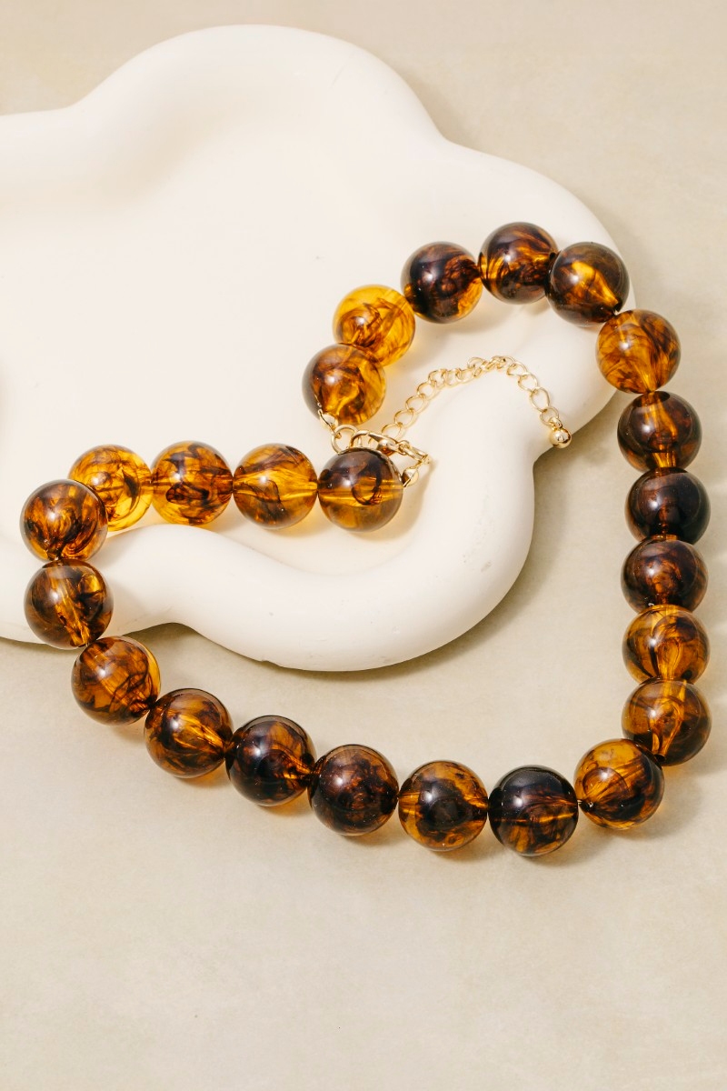 - This necklace displays a vibrant large tortoise shell ball beaded style. Witness the transformative power of accessories as this piece effortlessly redefines your fashion narrative.