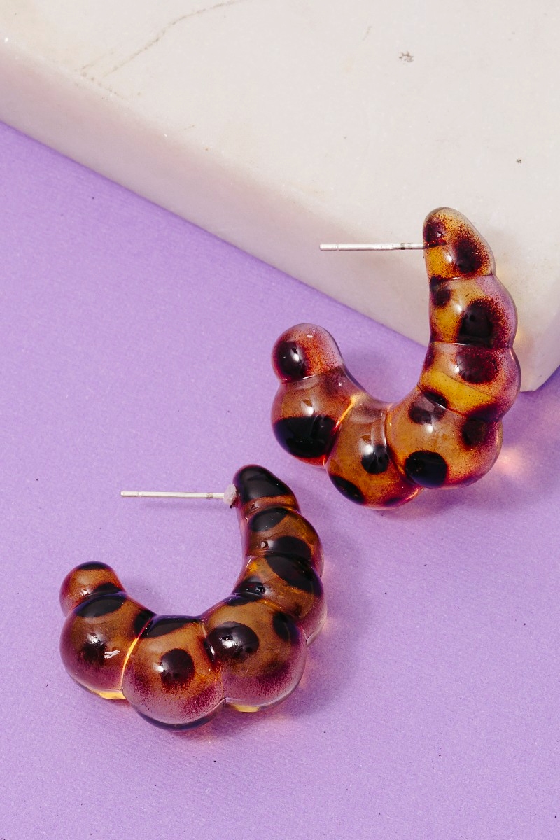 - This pair of hoop earrings brings a luxurious tortoise shell bubbly resin oval style. Delight in the intricate details that make this pair of hoop earrings an essential element in expressing your fashion identity.