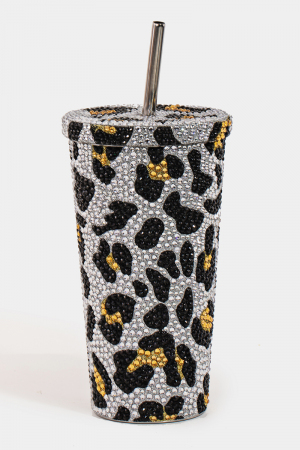 - This accessory displays a fashionable stainless steel leopard print rhinestone tumbler style. Elevate your ensemble with this chic, timeless accessory. Straw included