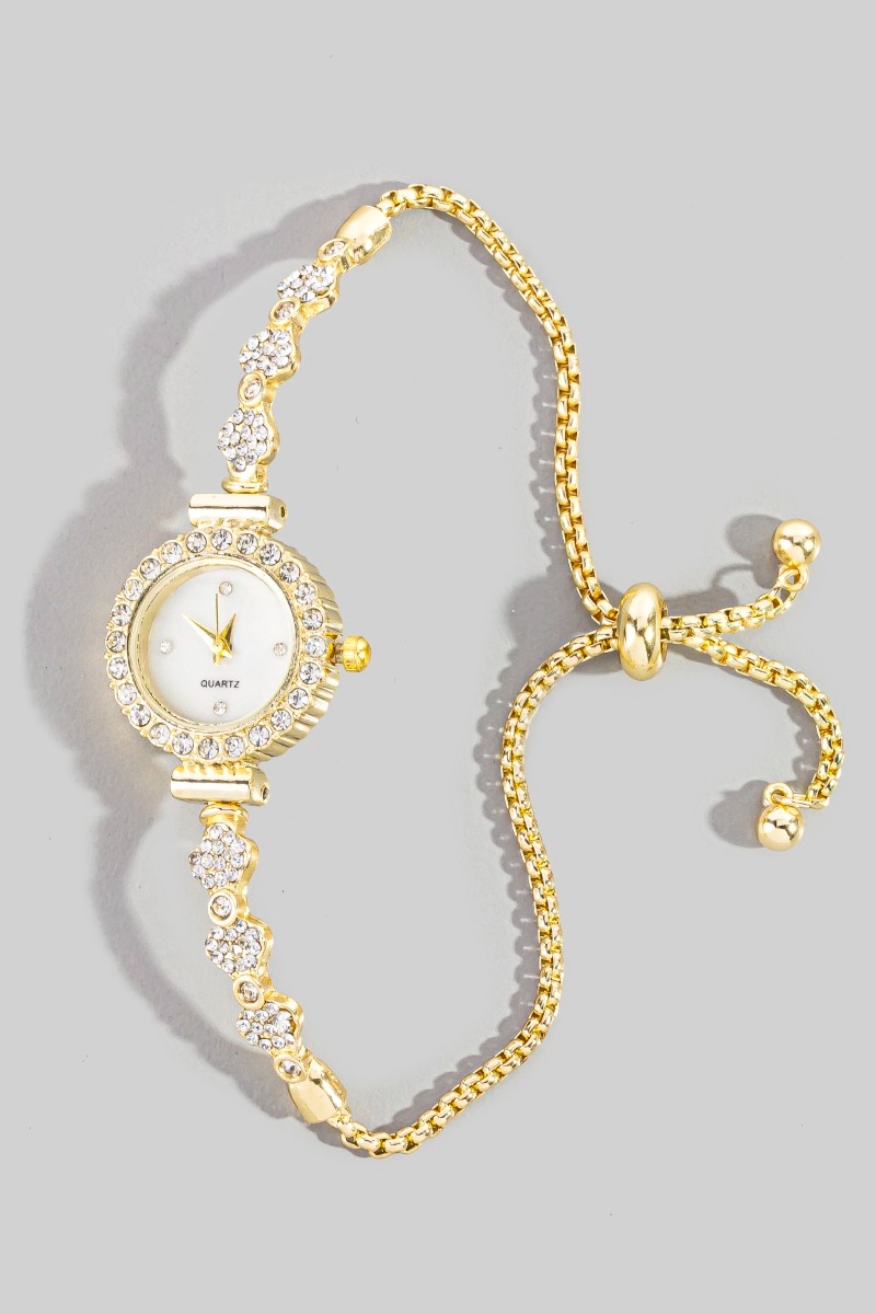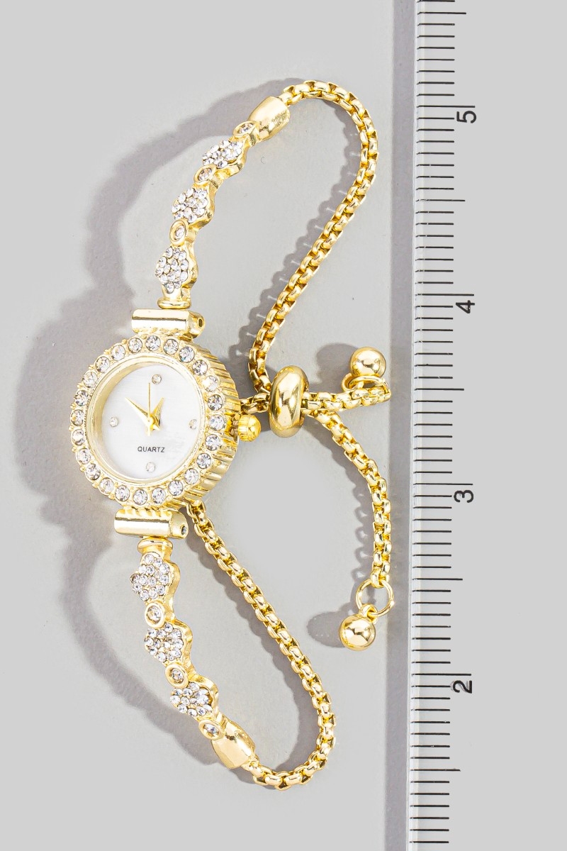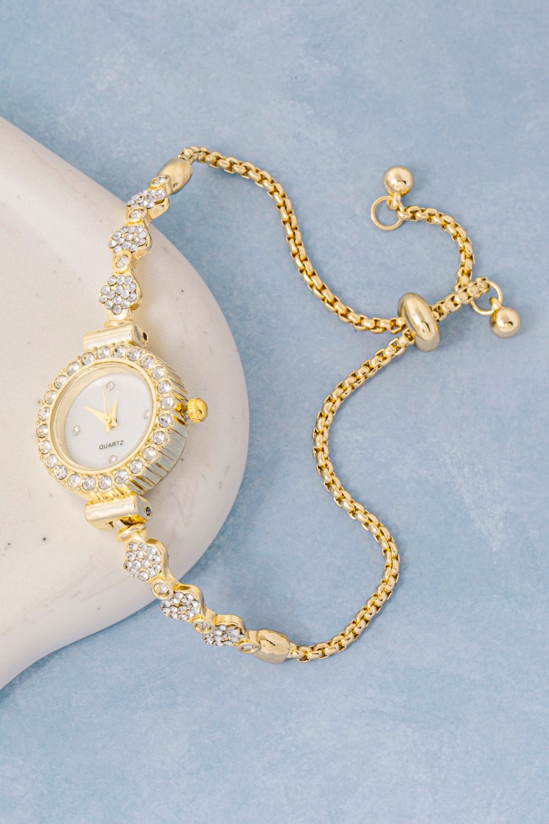 - This bracelet introduces a stunning antique gold cubic zirconia adjustable watch style. Revel in the intricate design that effortlessly distinguishes this bracelet, making it a statement piece.