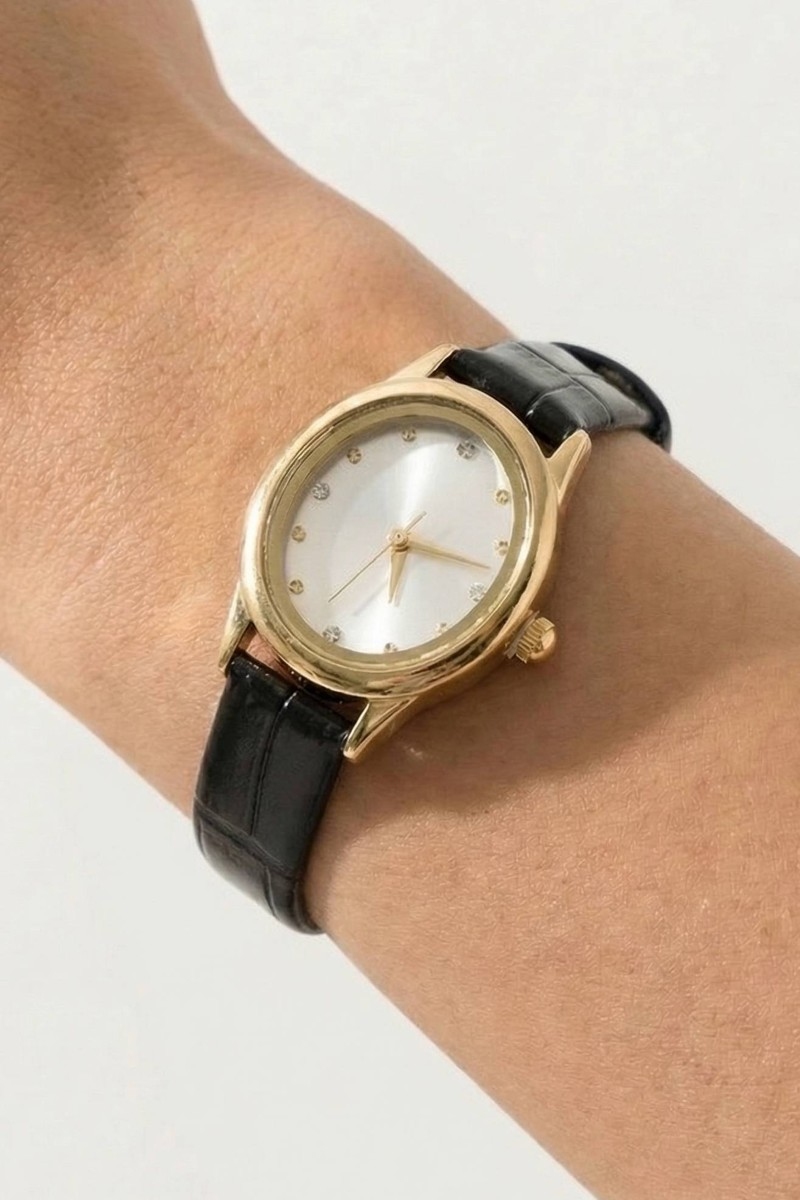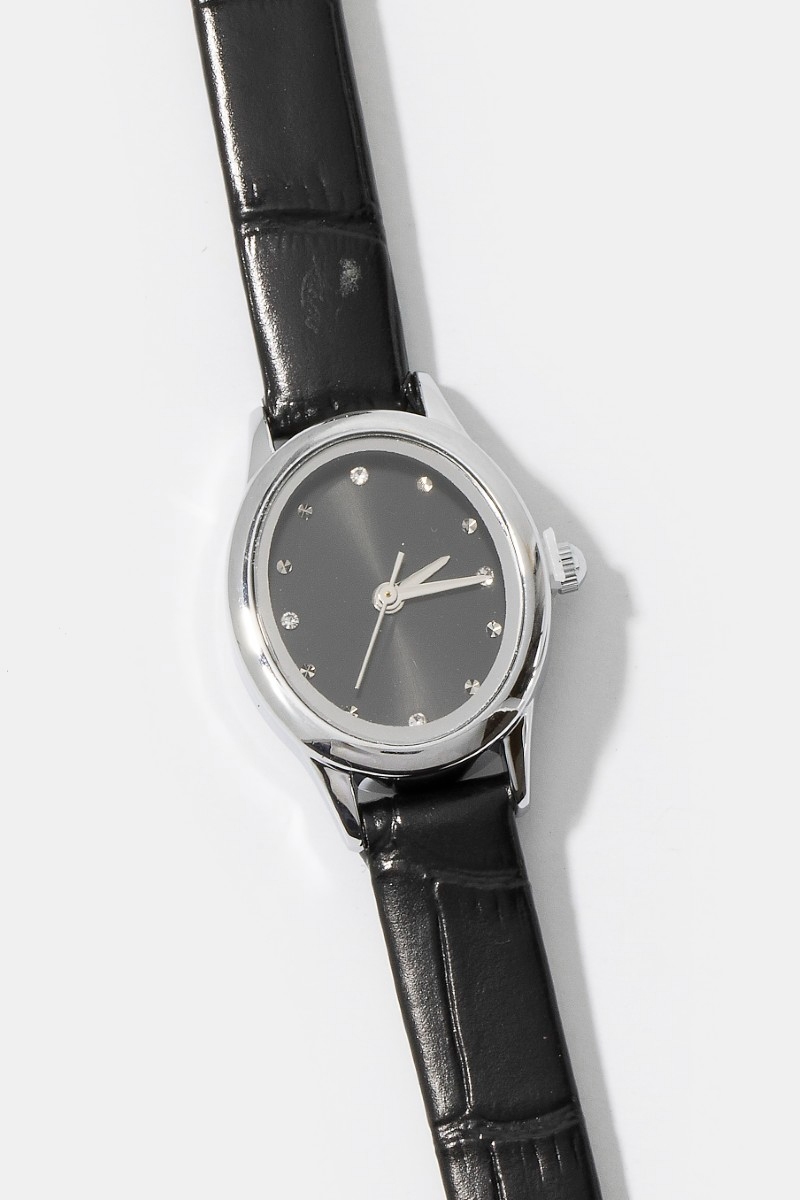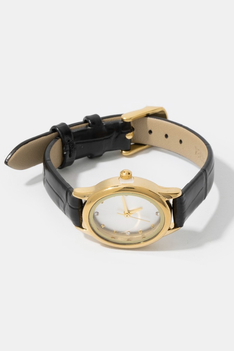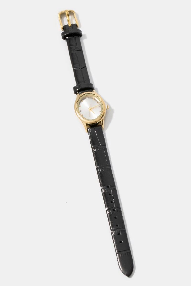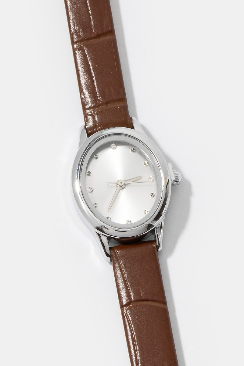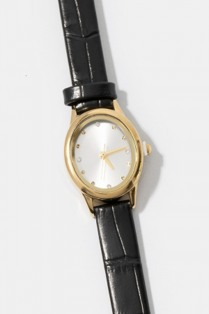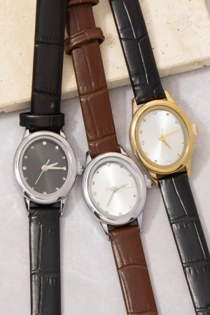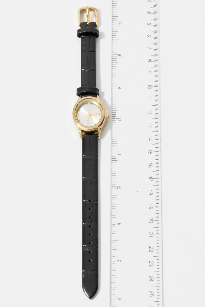 - This bangle bracelet showcases a timeless croc embossed leather strap minimalist round watch style. Indulge in the allure of exquisite craftsmanship as this bangle bracelet effortlessly adds a touch of luxury to your attire.