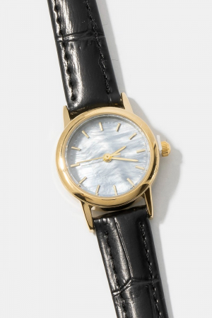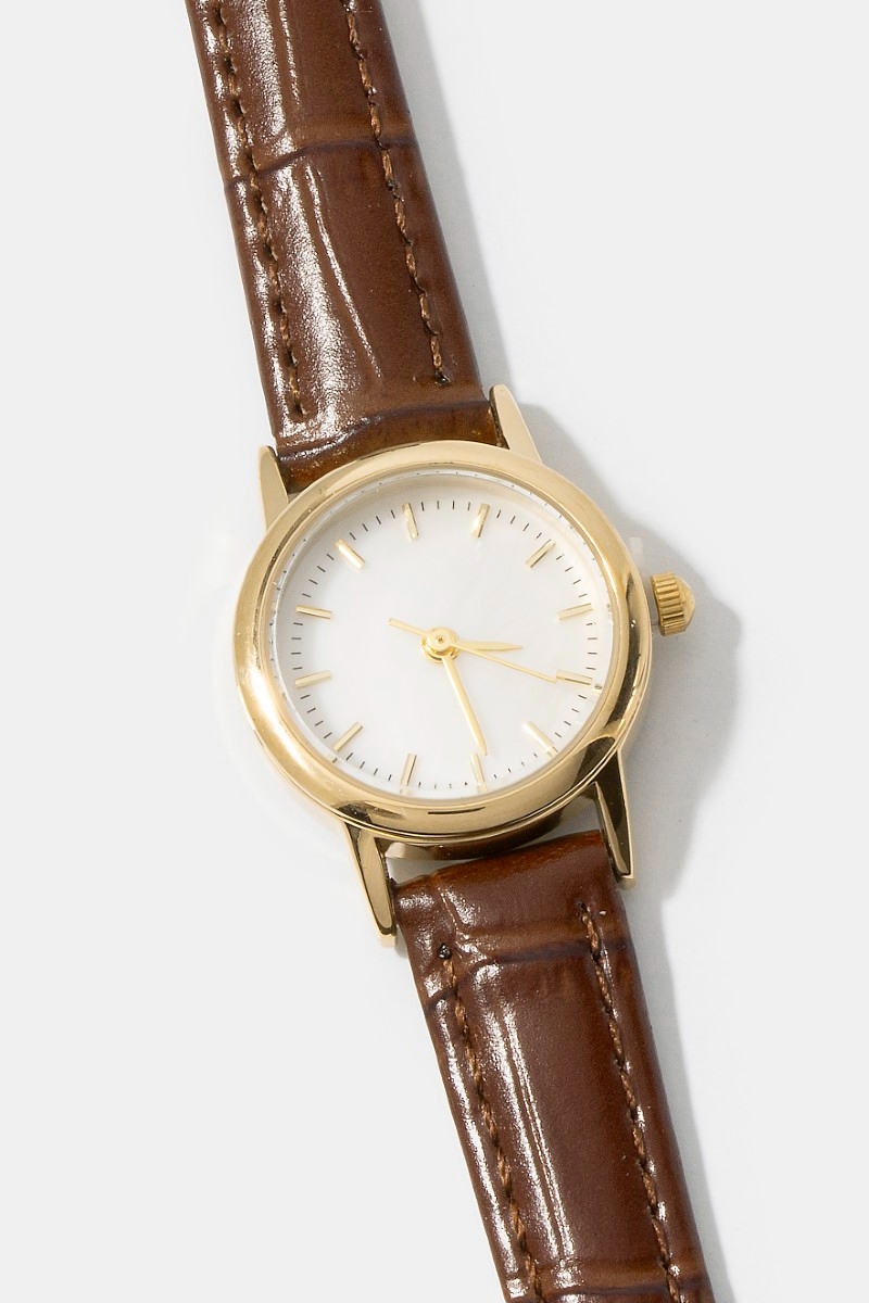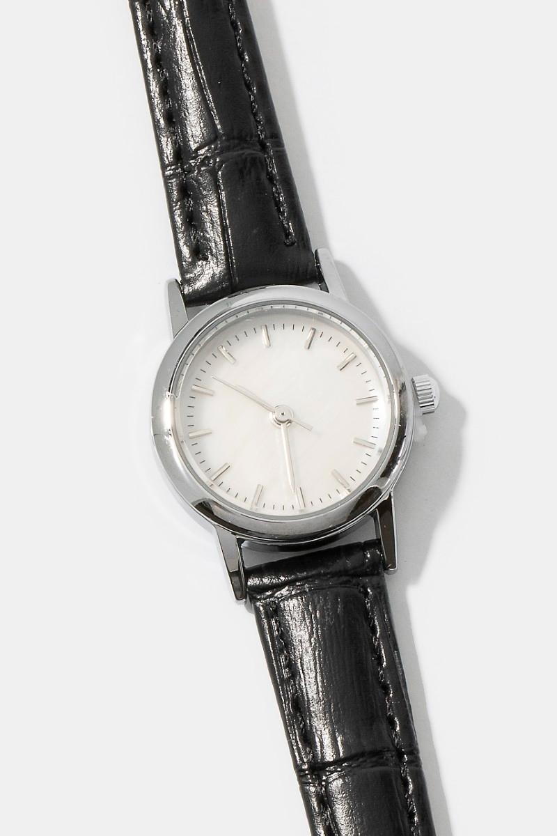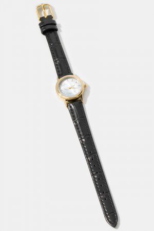 - This bangle bracelet features a fashionable croc embossed leather strap round watch style. Celebrate the art of accessorizing with this piece that effortlessly encapsulates modern trends.