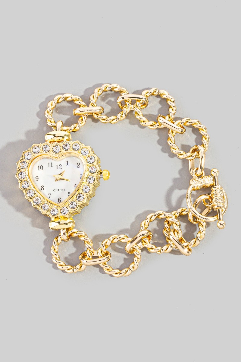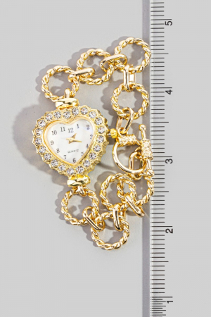 Cz Heart Toggle Chain Bracelet Watch