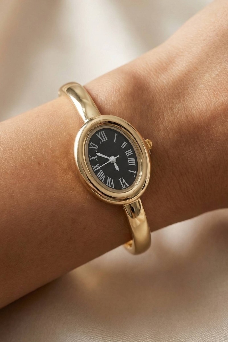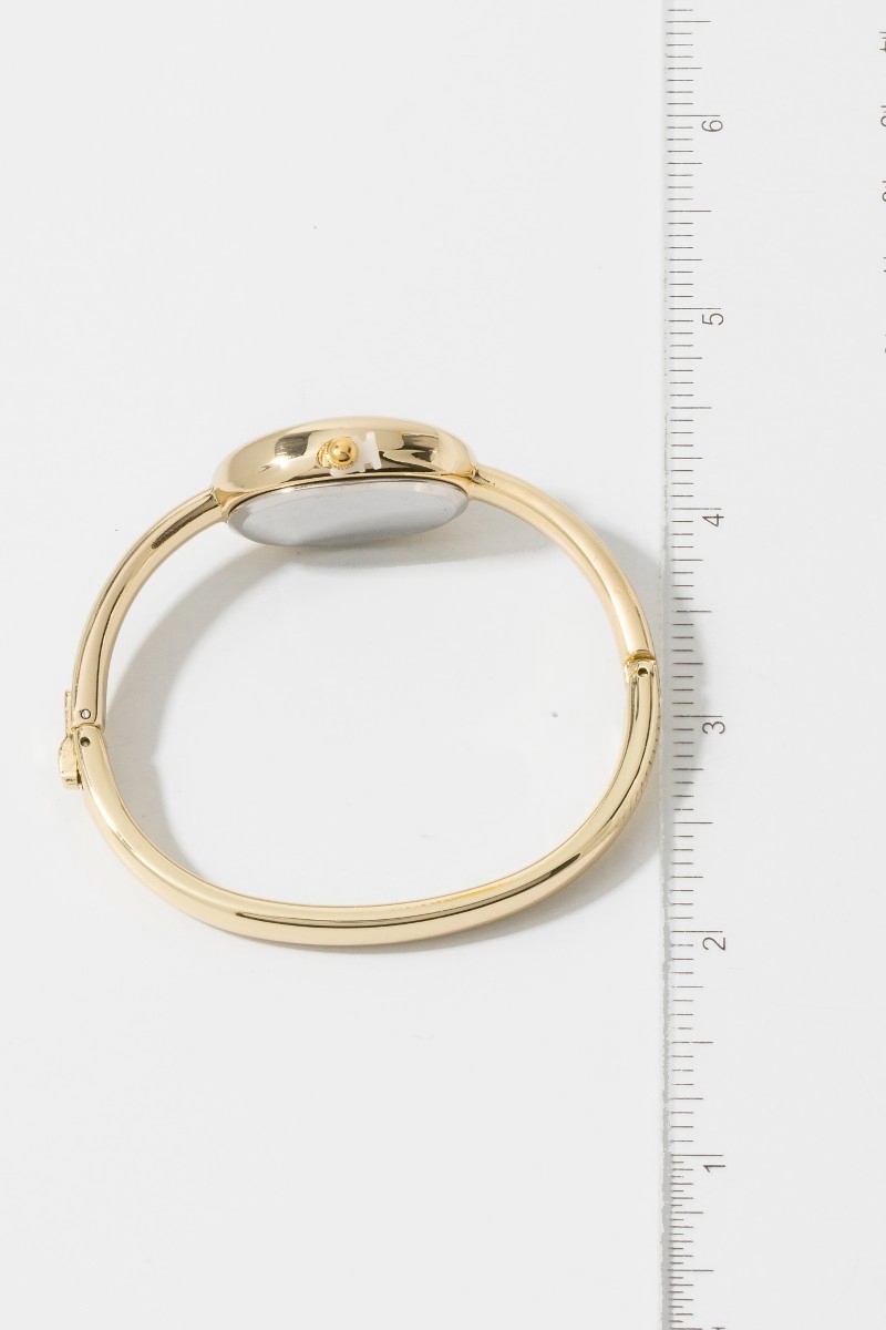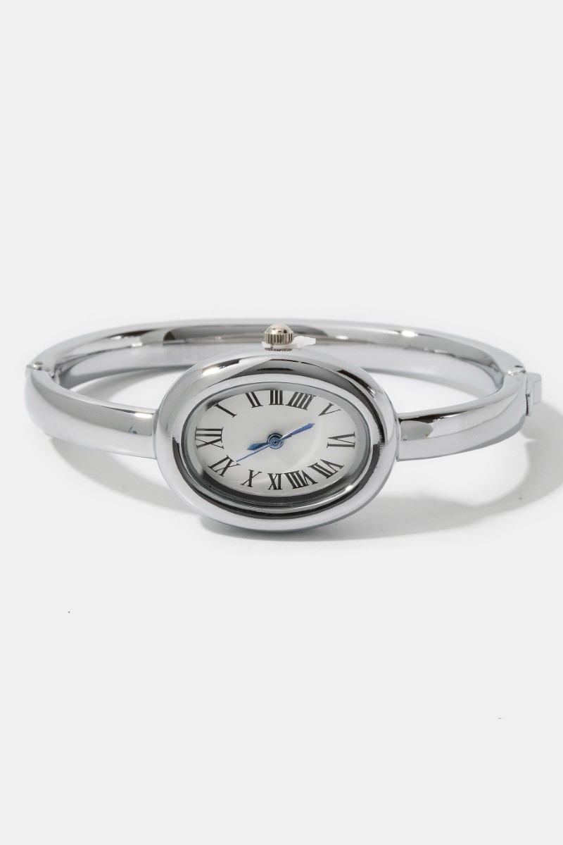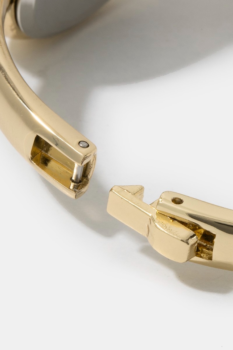 • This bracelet brings a luxurious hinged oval bangle watch style. Delight in the nuanced details that make this bracelet a testament to fine design and impeccable taste.