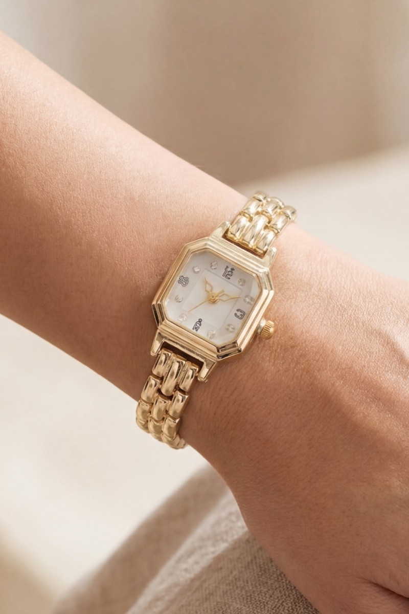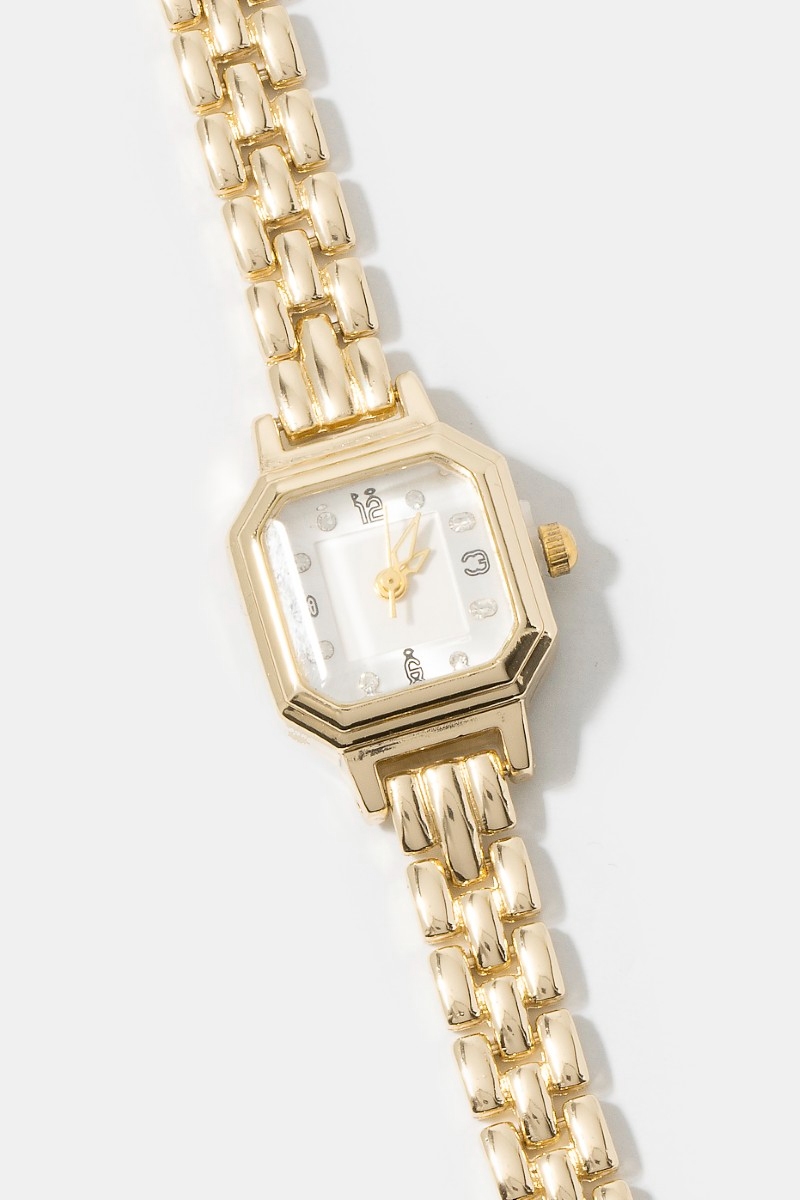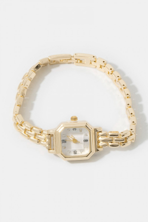 - This showcases a timeless octagon case crystal marker brick link watch style. Immerse yourself in the world of understated glamour as this effortlessly exudes timeless appeal.