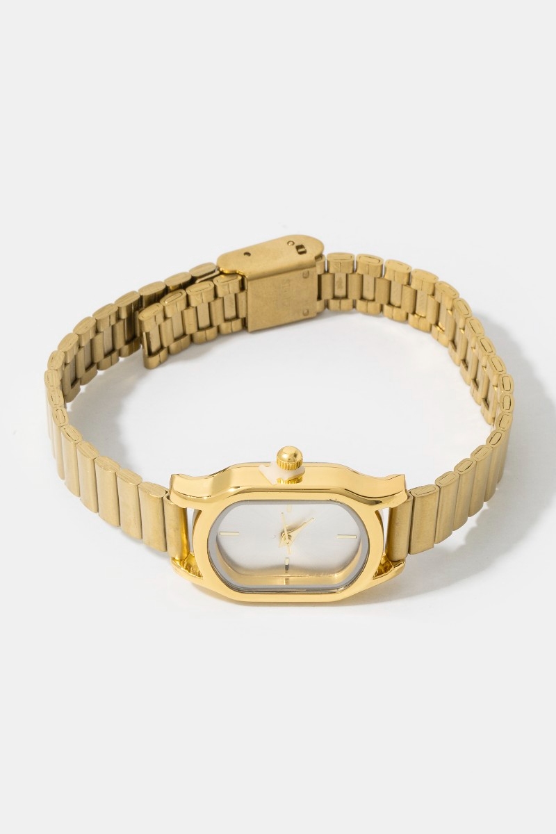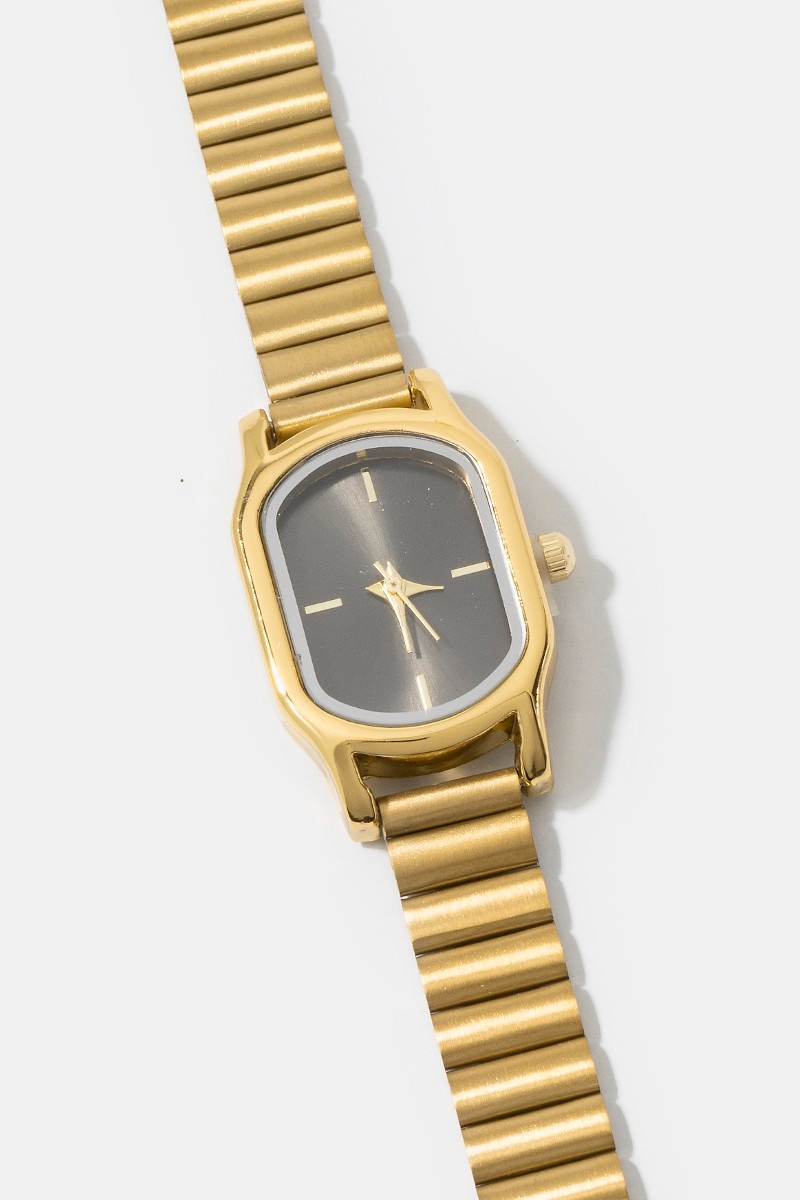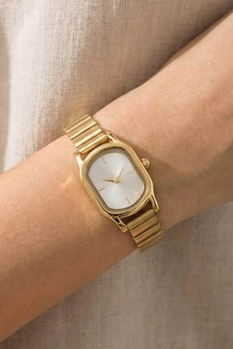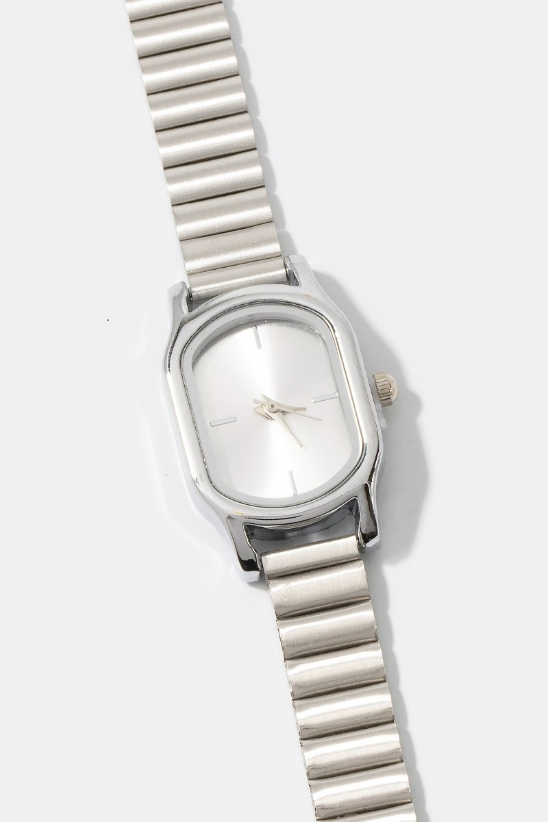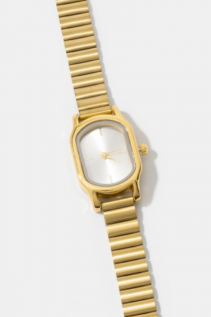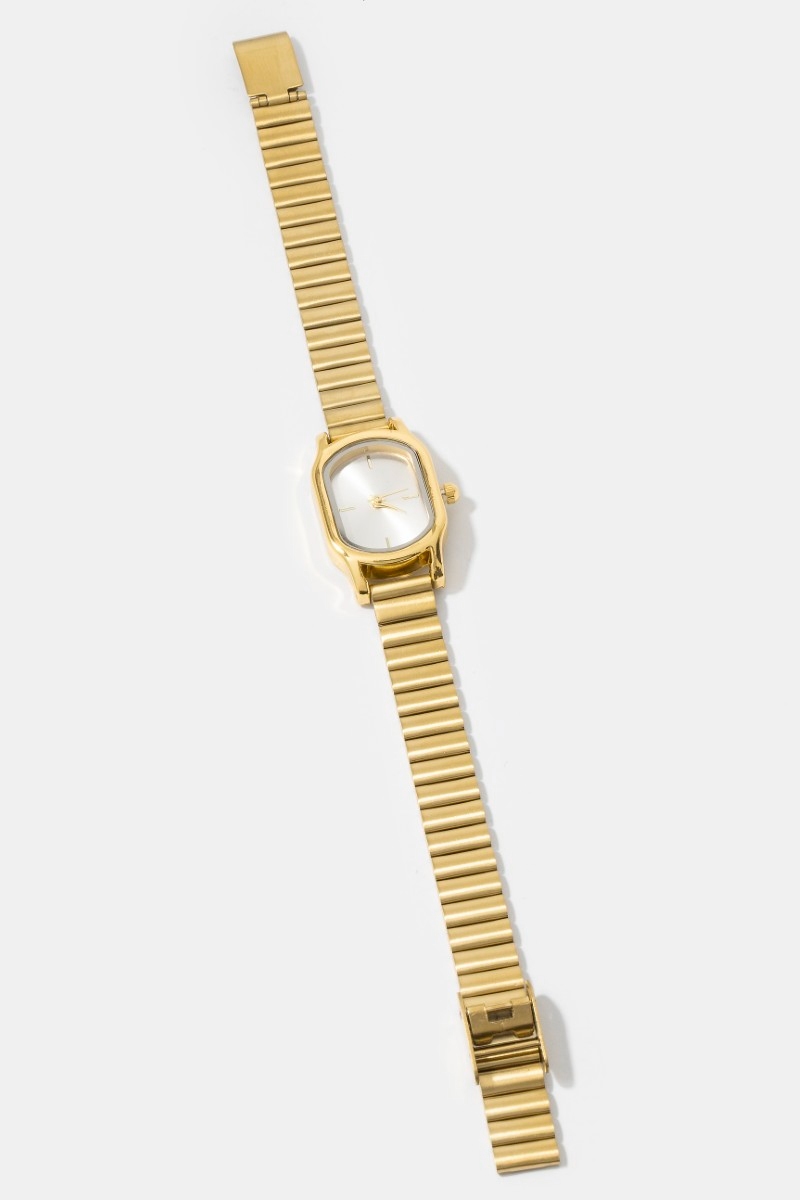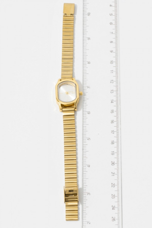 • This bangle bracelet adds a modern ribbed cushion metallic band minimalist rectangle watch style. Witness the perfect fusion of style and functionality as this bangle bracelet effortlessly complements your lifestyle.