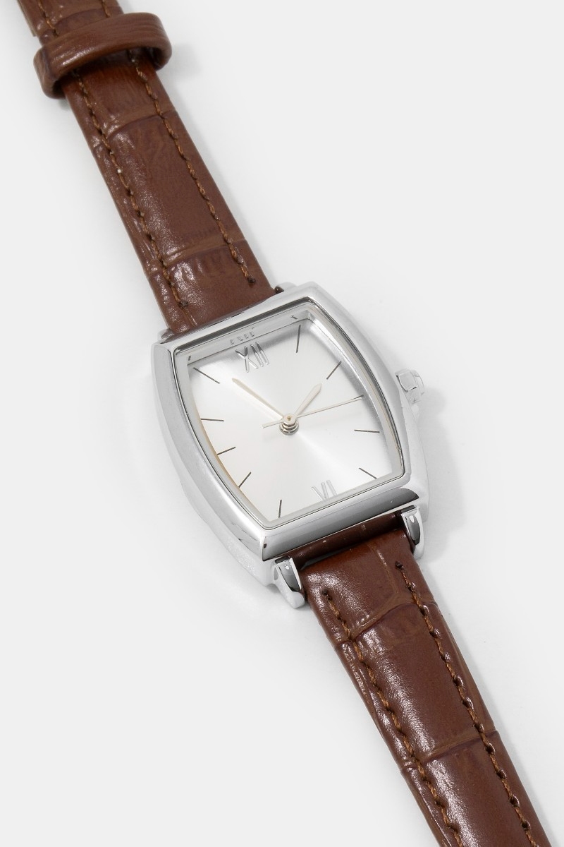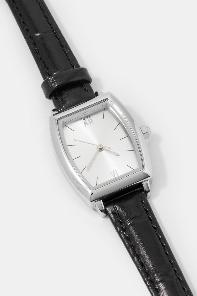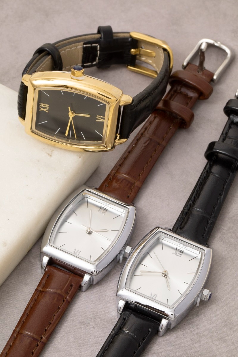 - This accessory adds a modern thin leather strap vintage rectangle watch style. Experience a subtle blend of modernity and classic charm as this accessory effortlessly adorns your ensemble.