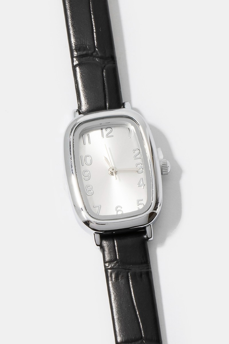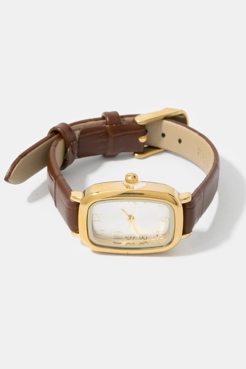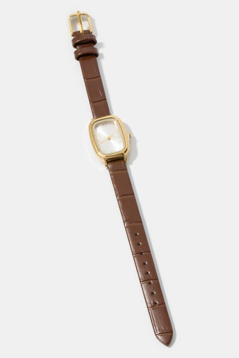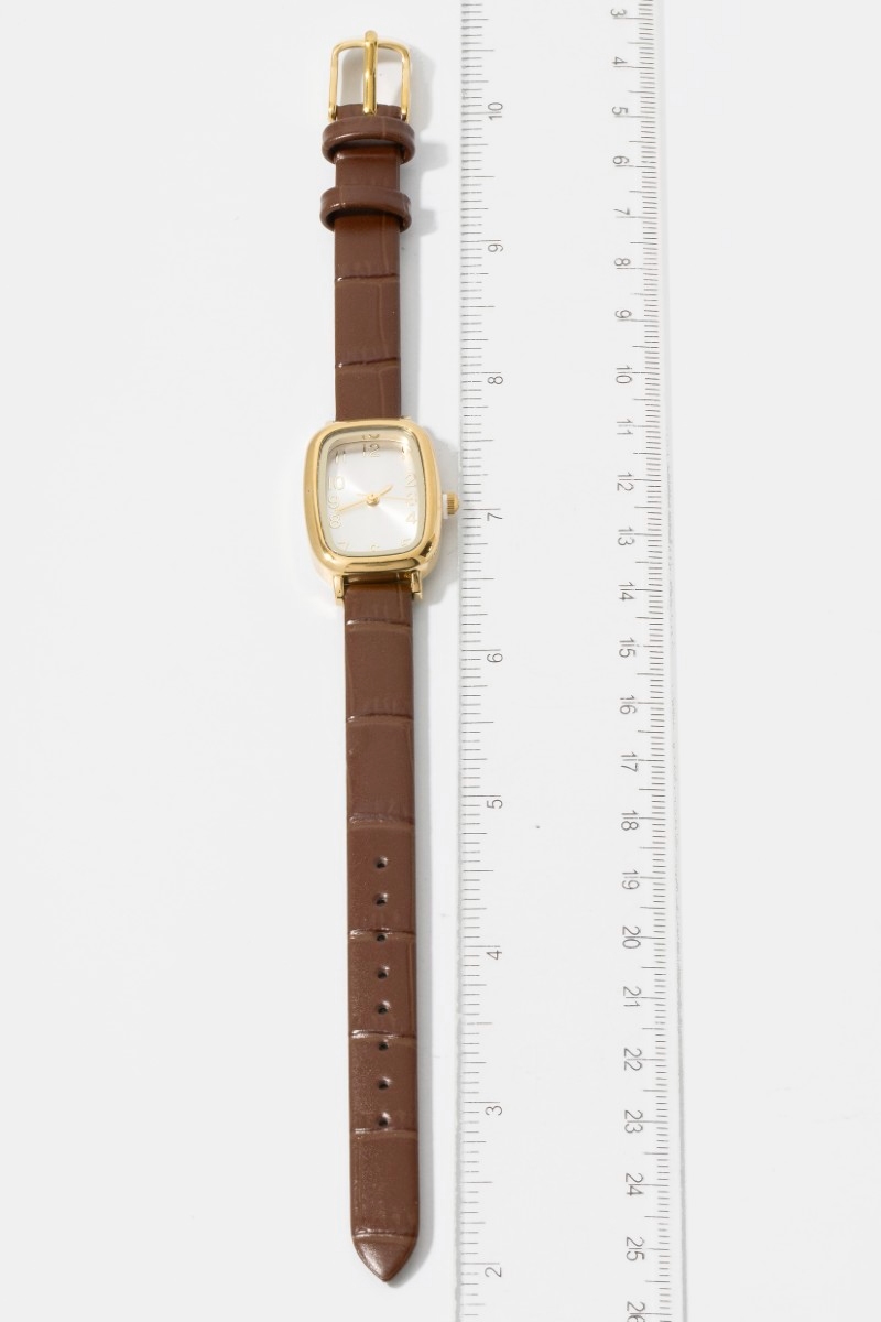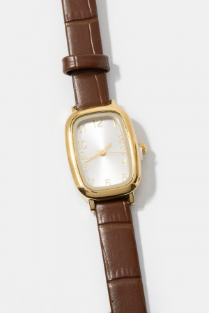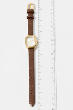 • This bangle bracelet brings a luxurious vintage cushion croc leather embossed square watch style. Explore a refined sense of style with this bangle bracelet, seamlessly elevating the chic factor of your look.