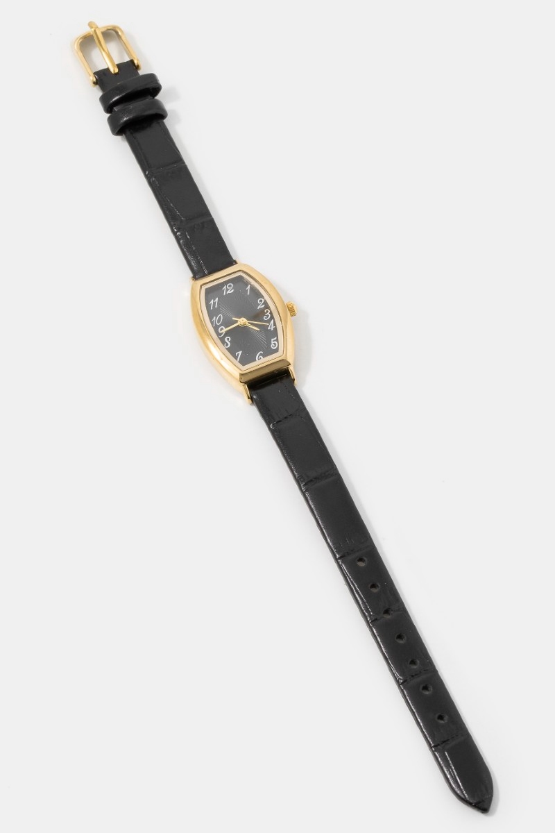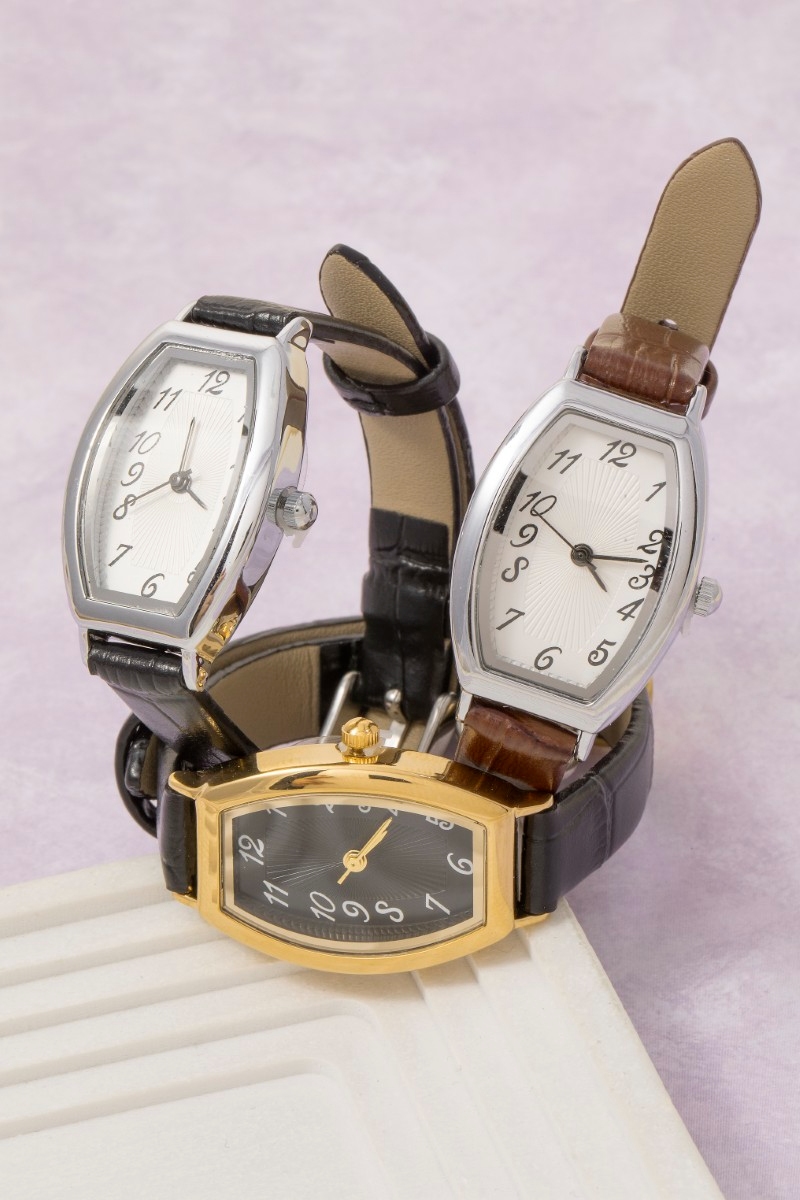 - This accessory showcases a timeless thin leather strap vintage style watch style. Discover the perfect balance of subtlety and flair as this accessory effortlessly completes your look.