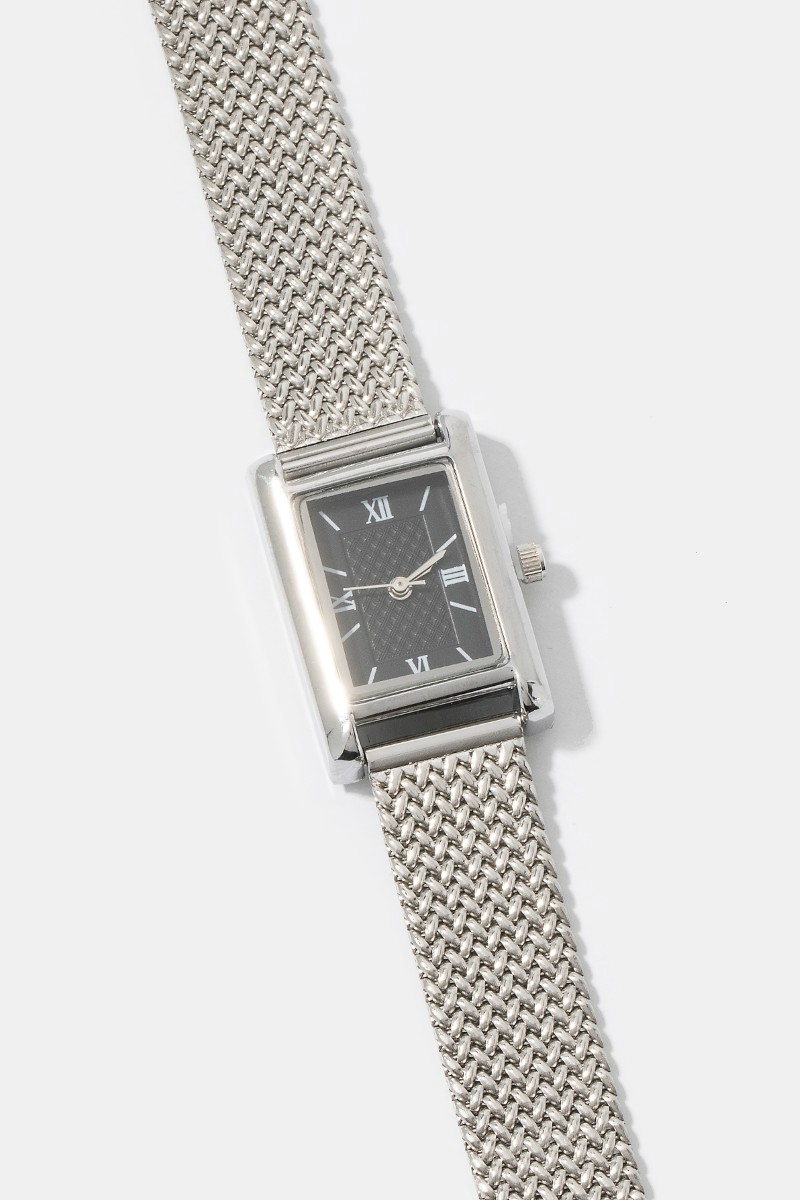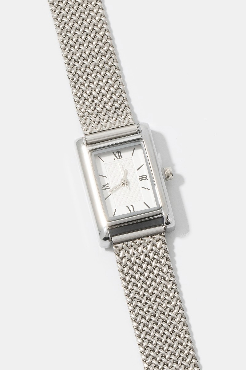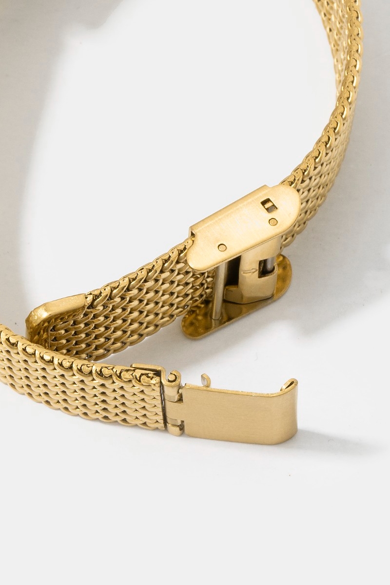 - This bangle bracelet brings a luxurious woven metallic mesh band rectangle watch style. Elevate your ensemble with this bangle bracelet that effortlessly captures the essence of refined fashion.