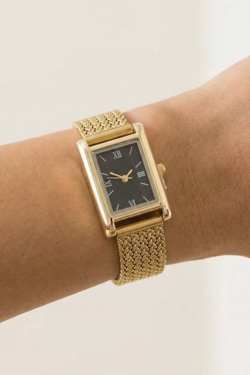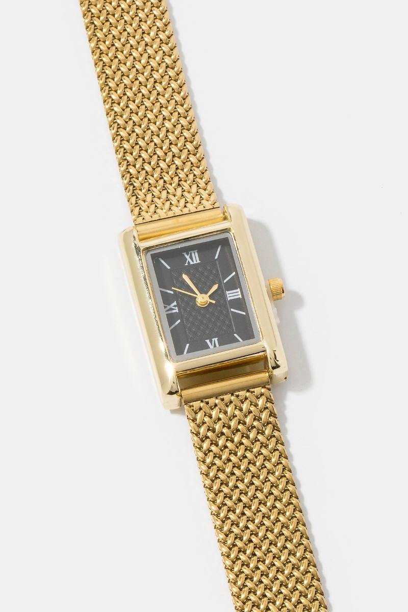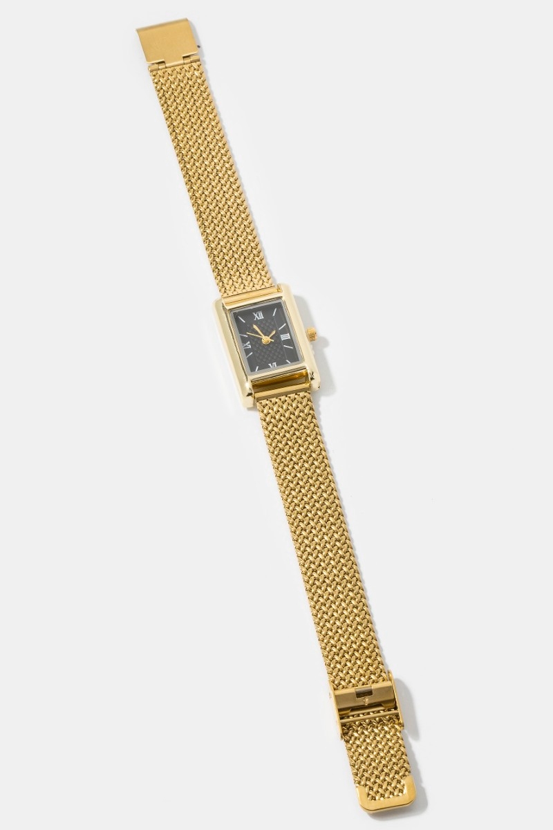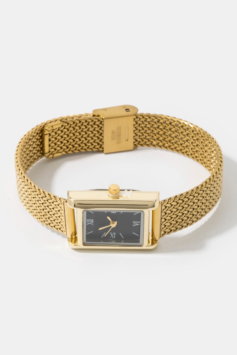 - This bangle bracelet brings a luxurious woven metallic mesh band rectangle watch style. Elevate your ensemble with this bangle bracelet that effortlessly captures the essence of refined fashion.