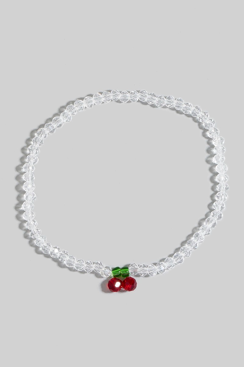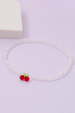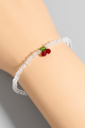 - This bracelet showcases a timeless glass beaded cherry style. Revel in the intricate design that effortlessly distinguishes this bracelet, making it a statement piece.
