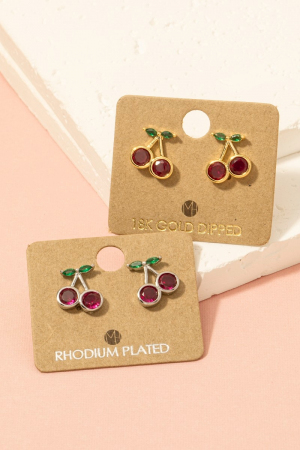 - This pair of stud earrings brings a unique gold dipped cubic zirconia cherry style. Savor the craftsmanship that goes beyond the ordinary, as this pair of stud earrings effortlessly captivates attention.