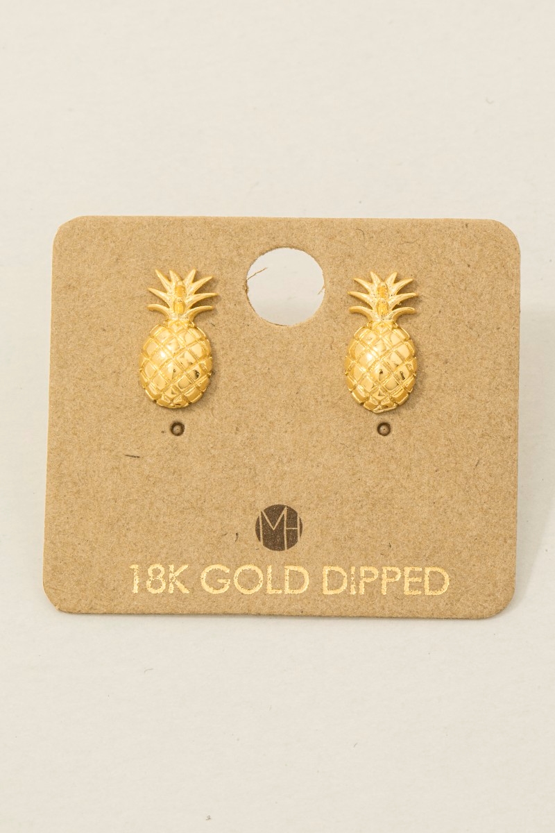 - This pair of stud earrings showcases a timeless gold dipped pineapple style. Redefine your look effortlessly with this standout, on-trend piece.