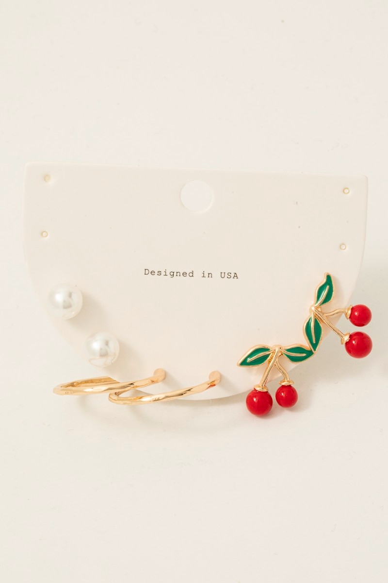 • This pair of earrings displays a fashionable tube hoops pearl and cherry studs set style. Embark on a journey of sartorial refinement as this pair of earrings effortlessly complements your fashion sense.