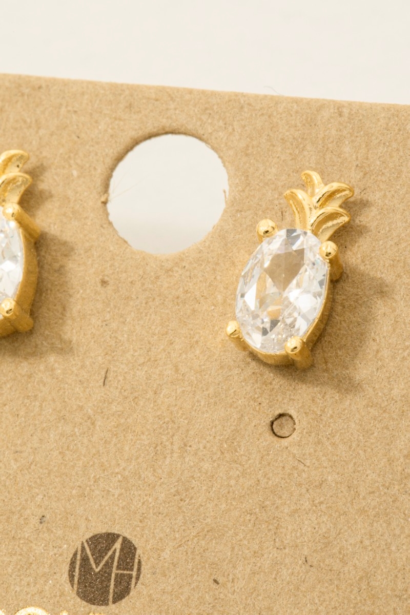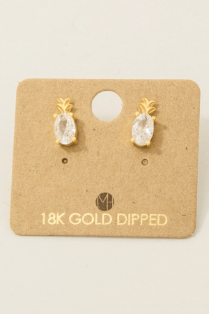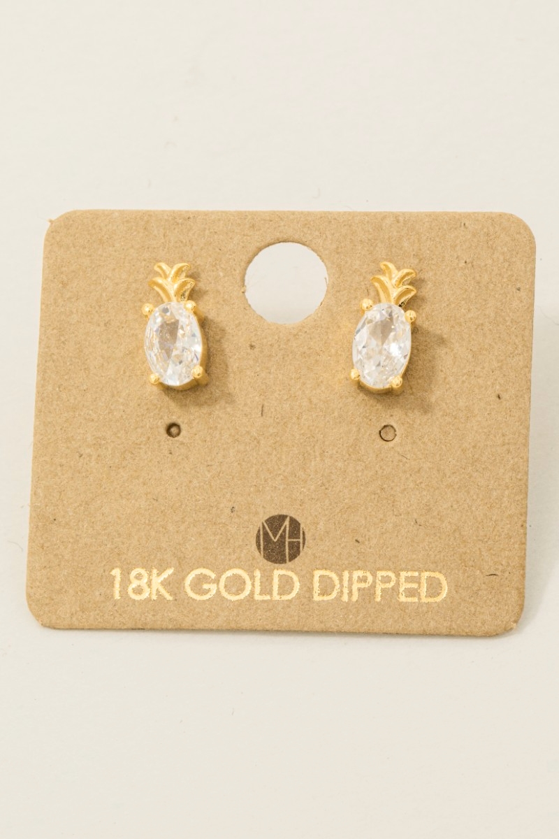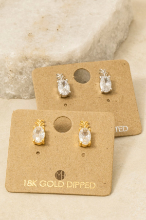 • This trending pair of earrings displays a vibrant gold dipped cubic zirconia pineapple stud earrings style. Discover the perfect balance of functionality and fashion.