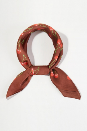 • This scarf brings a unique multi cherry fruit print bandana style. Discover the perfect balance of subtlety and flair as this scarf effortlessly completes your look.