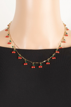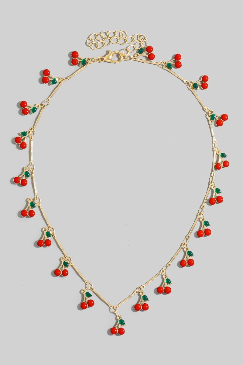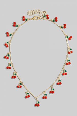 - This necklace displays a vibrant multi cherry fruit station style. Immerse yourself in the world of understated glamour as this necklace effortlessly exudes timeless appeal.