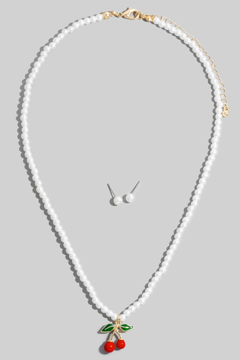 • This necklace set introduces a stunning cherry pendant pearl beaded style. Unveil modern elegance with this subtly intricate necklace set.