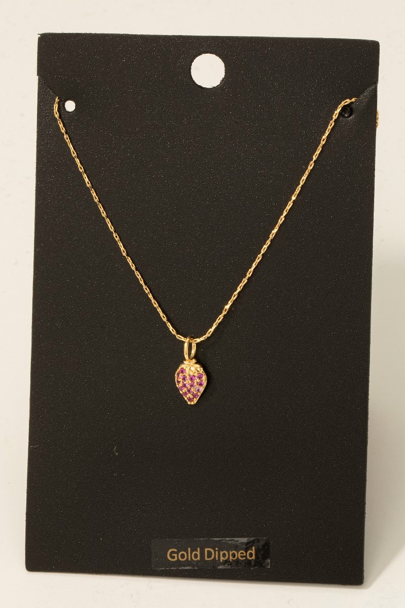- This necklace introduces a stunning gold dipped cubic zirconia pave strawberry pendant style. Immerse yourself in the details of design, as this necklace effortlessly becomes a conversation starter. Columbus Jewelry