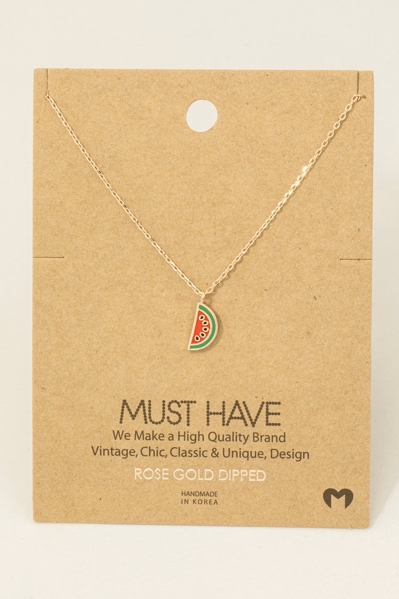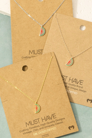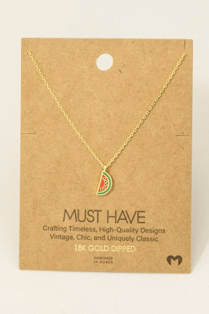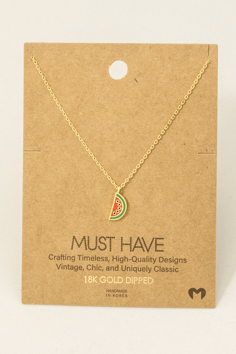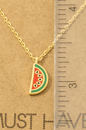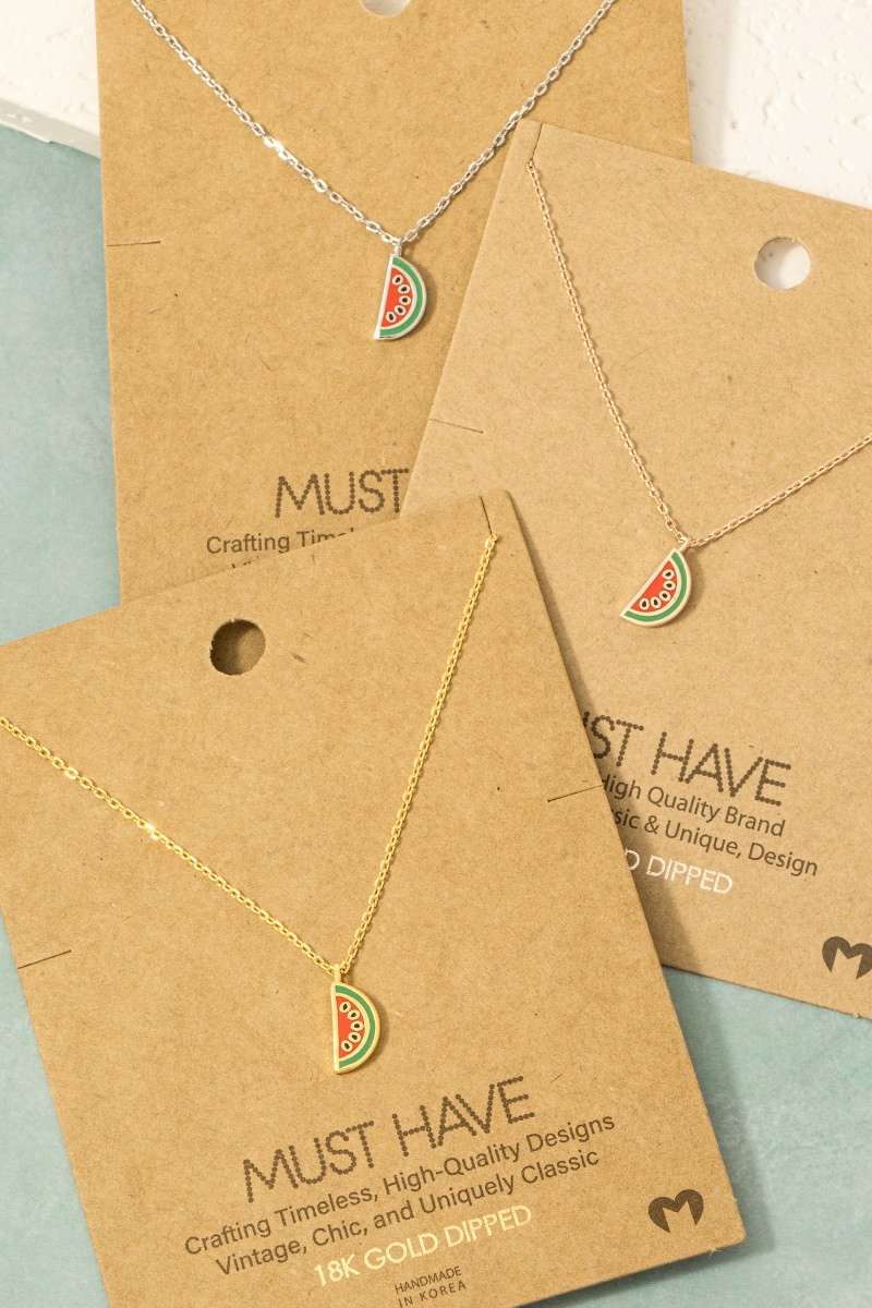 - This necklace showcases a timeless gold dipped epoxy watermelon pendant style. Experience the joy of accessorizing with this piece that effortlessly combines versatility and charm.