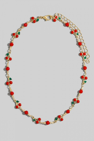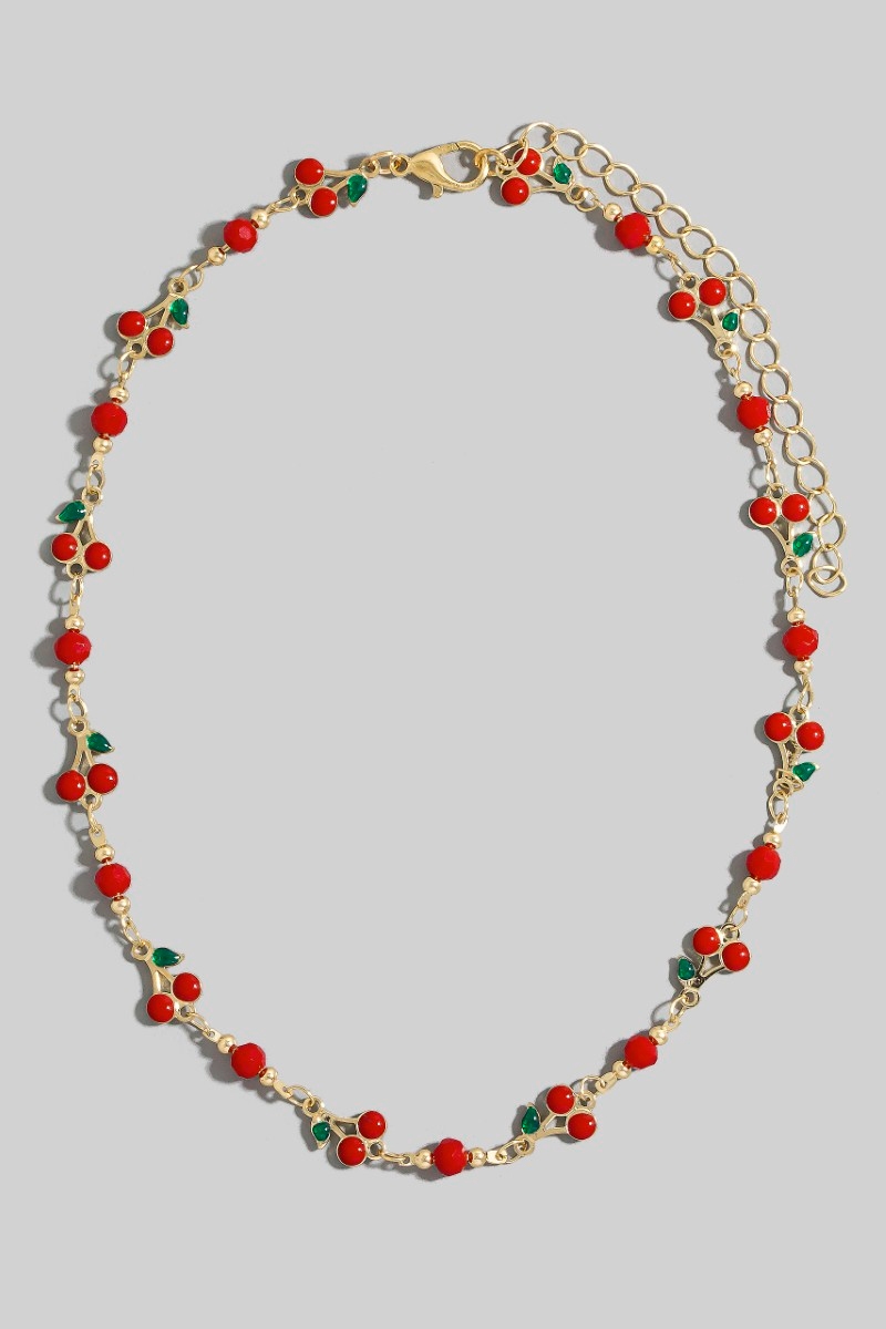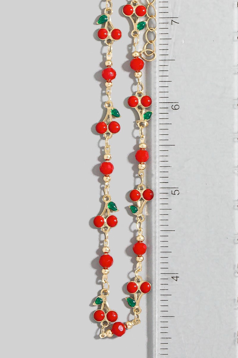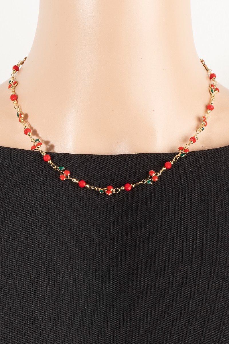 - This chain necklace features a fashionable multi cherry fruit style. Discover the perfect balance of subtlety and flair as this chain necklace effortlessly completes your look.