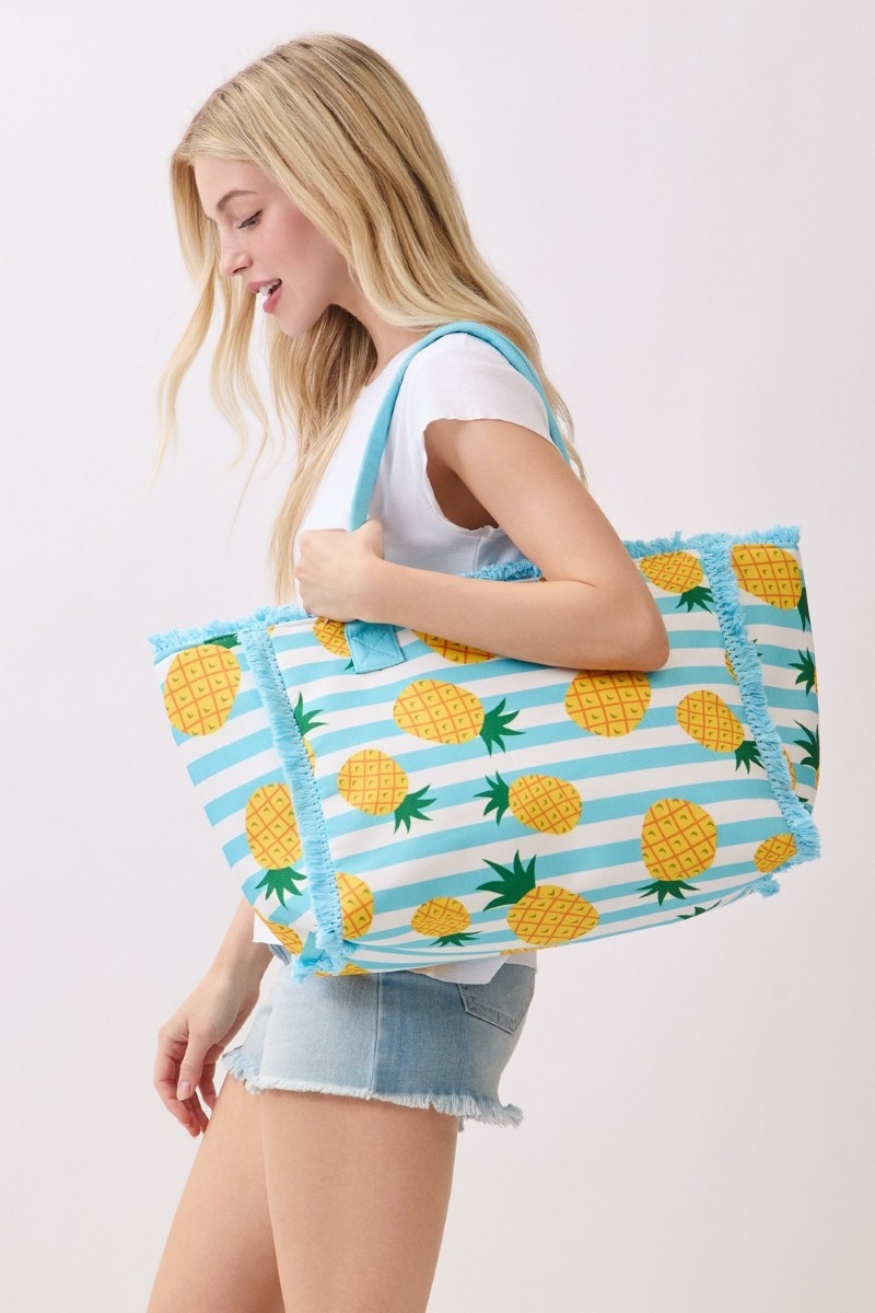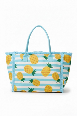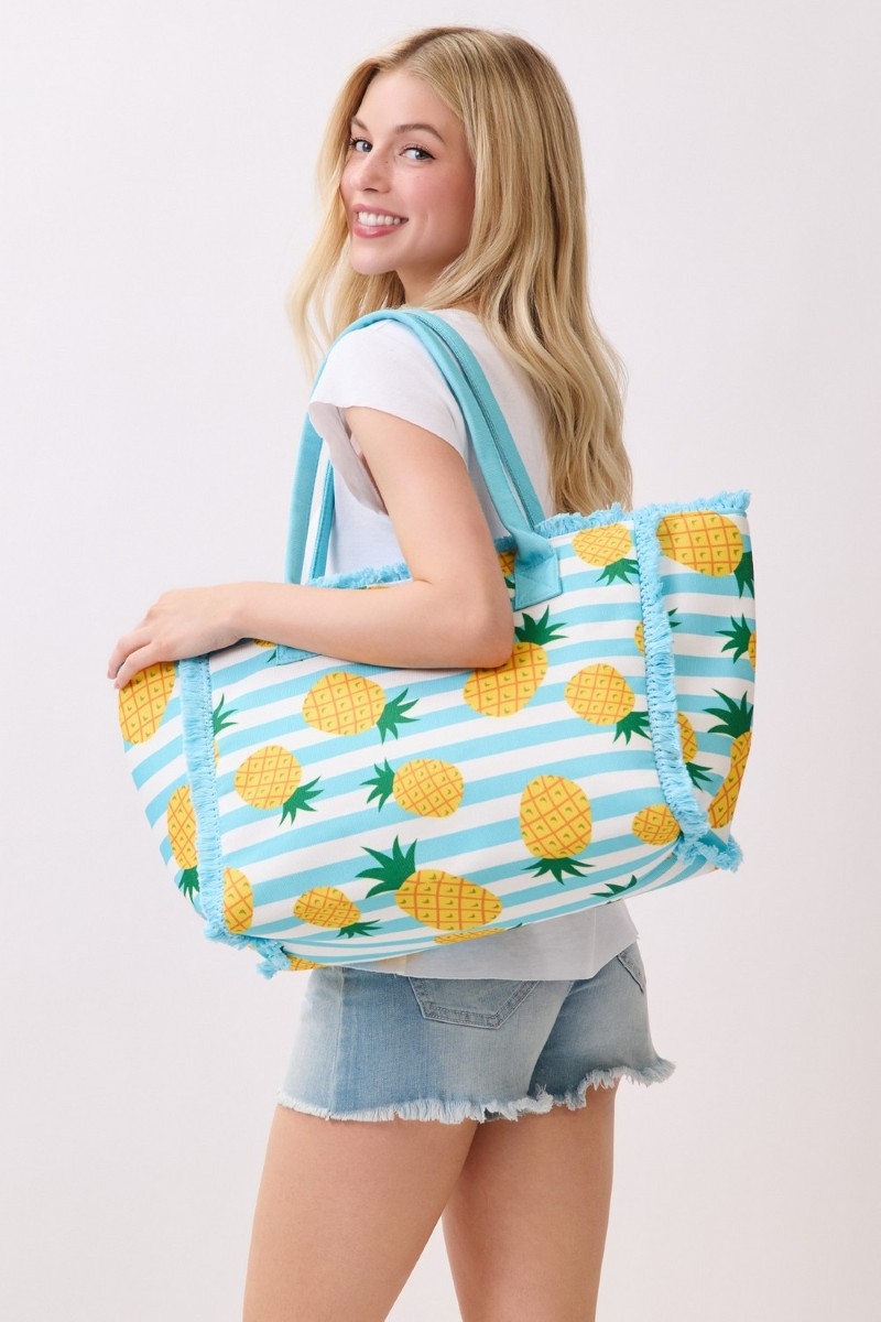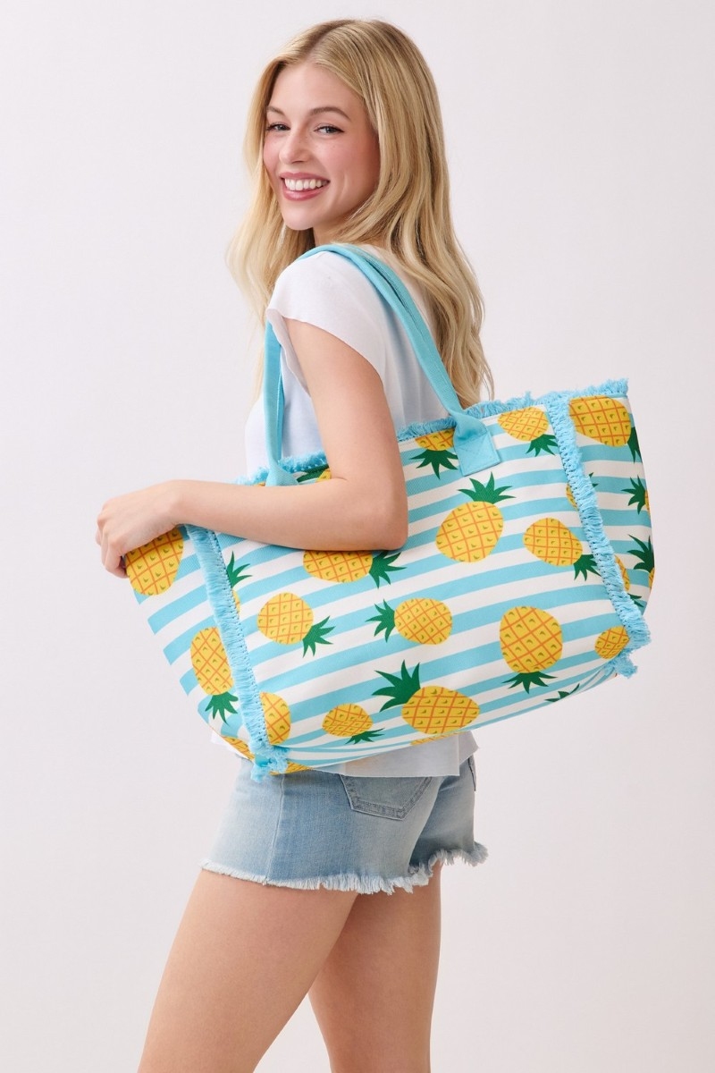- This tote bag brings a unique pineapple print striped style. Embark on a journey of sartorial refinement as this tote bag effortlessly complements your fashion sense.