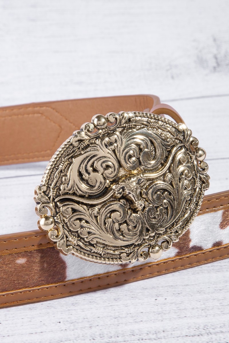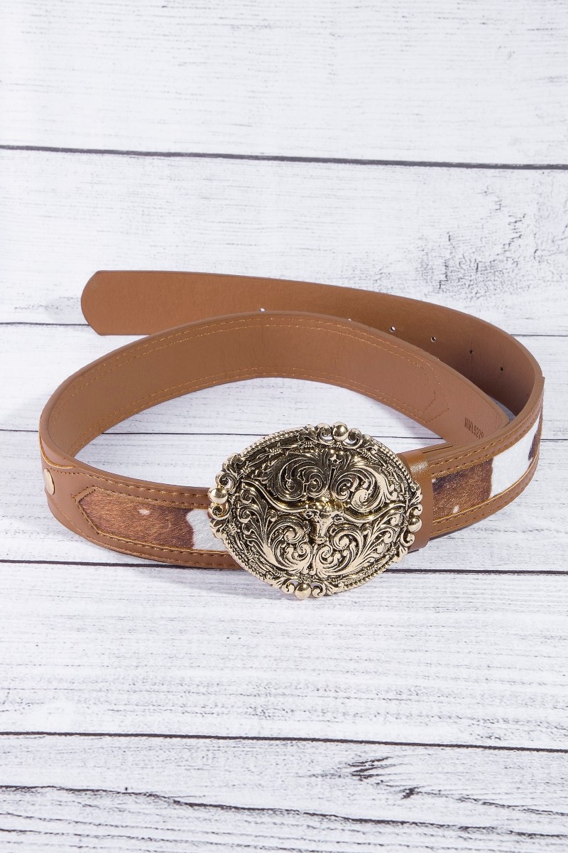 Western Grommet Oval Longhorn Buckle Vegan Leather Belt