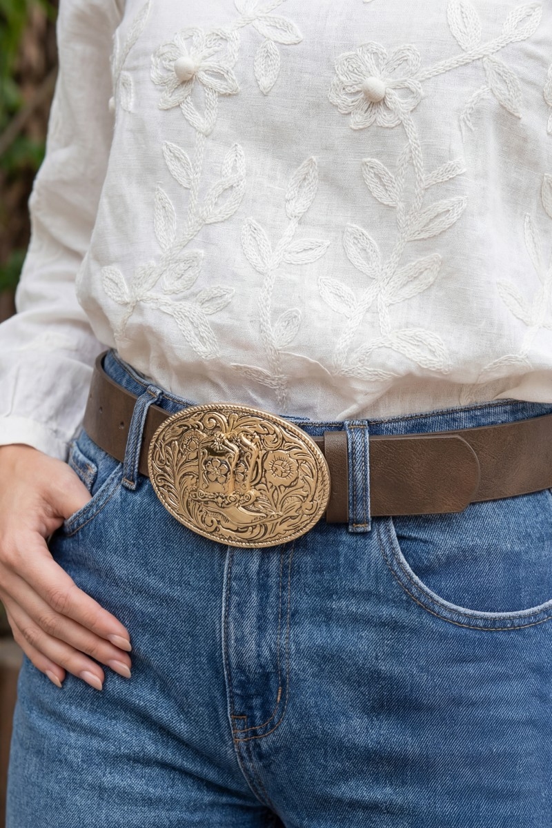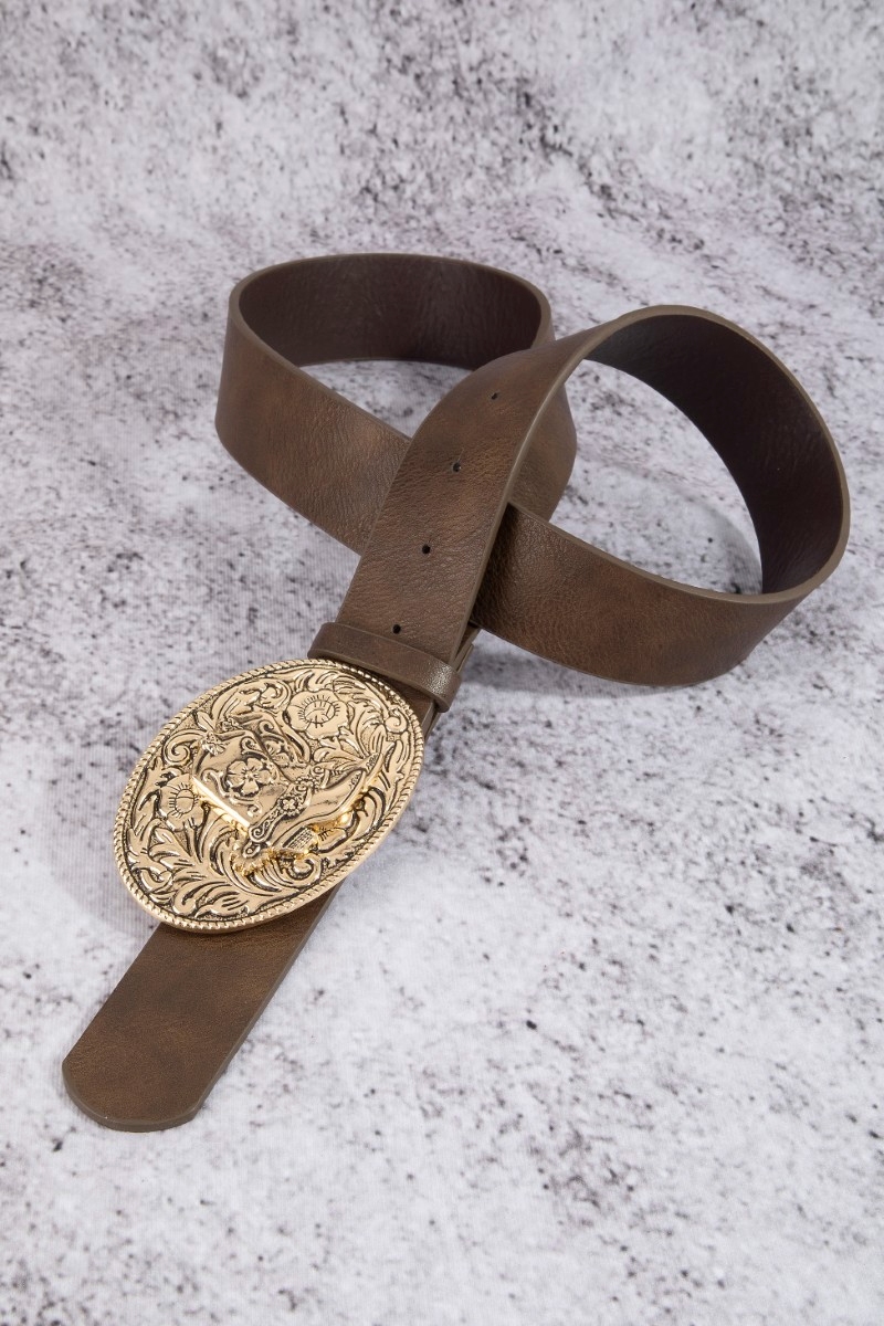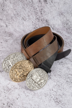 - This leather belt brings a stunning western concho buckle vegan style. Unveil modern elegance with this subtly intricate leather belt.