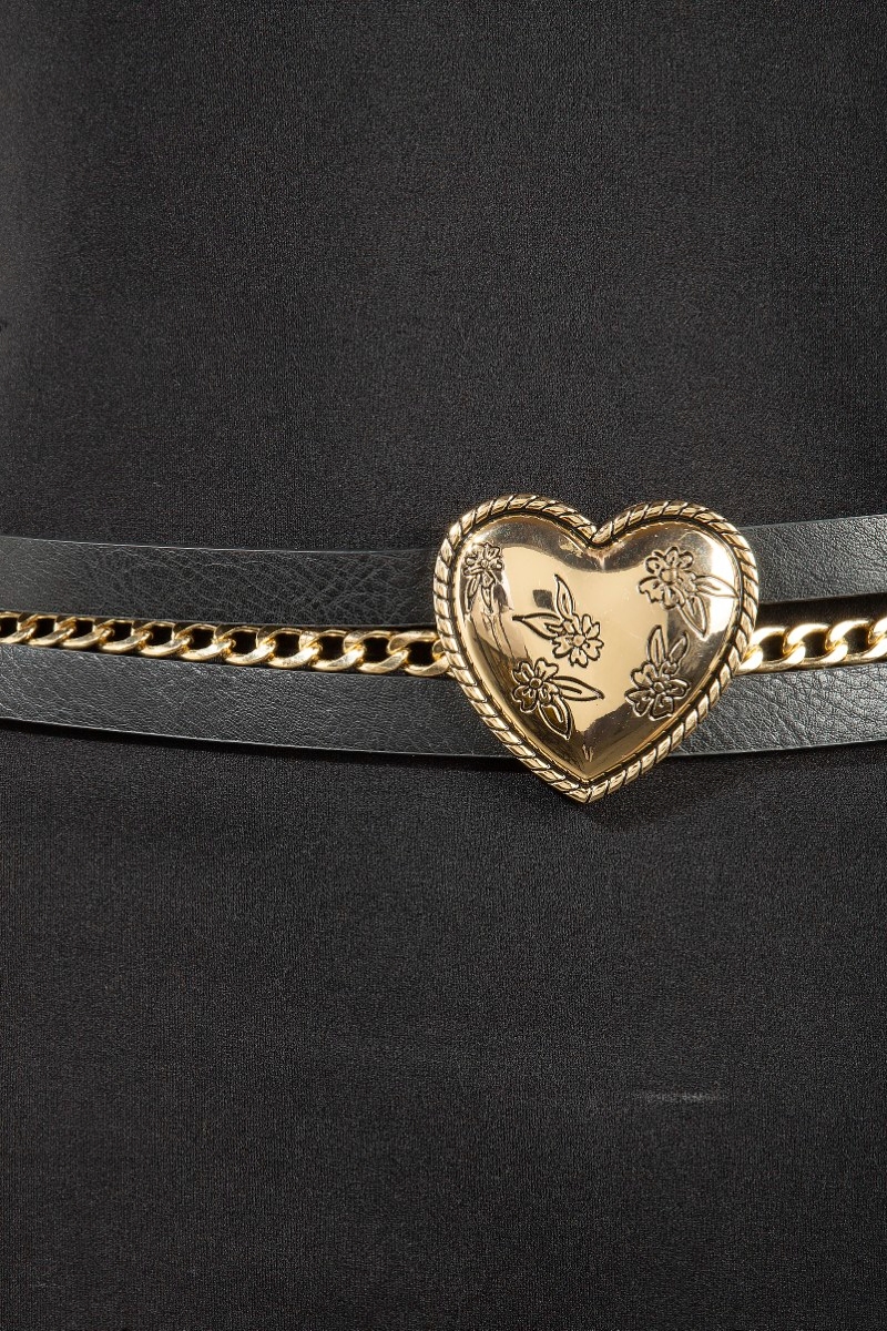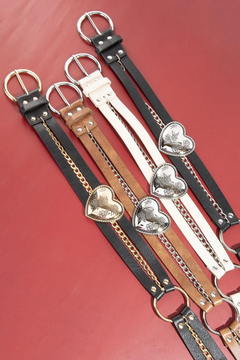 • This chain belt showcases a timeless concho heart faux leather and style. Elevate your ensemble with this chain belt that effortlessly captures the essence of refined fashion.