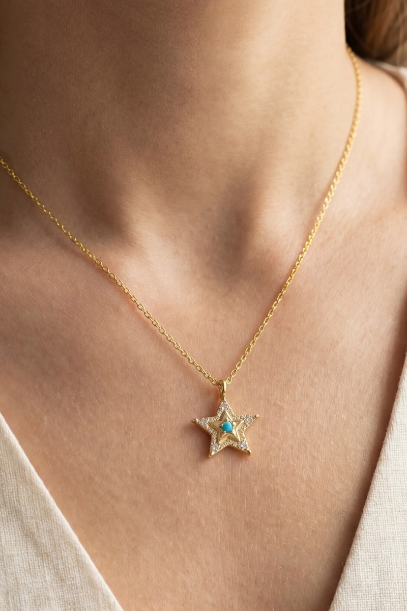 - This pendant necklace introduces a stunning gold dipped turquoise and cubic zirconia star style. Witness the transformative power of accessories as this piece effortlessly redefines your fashion narrative.