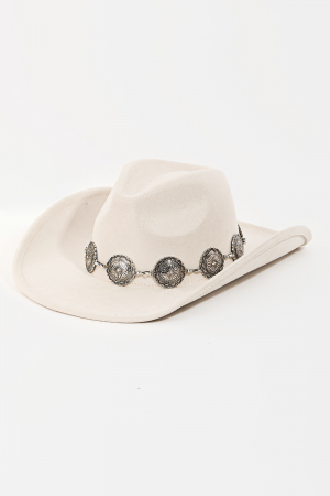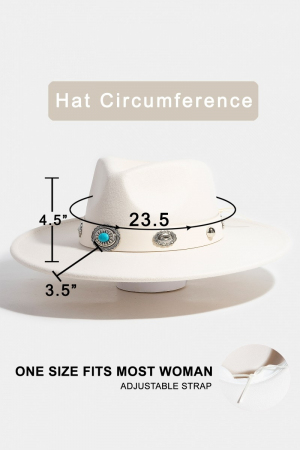 Concho Chain Strap Flat Brim Fedora Fashion Hat