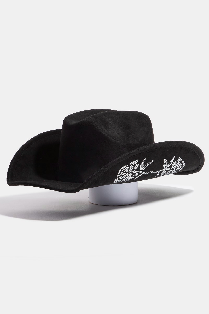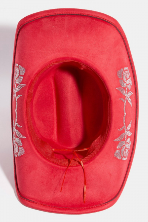 - This cowboy hat showcases a timeless rhinestone rose embroidered style. Celebrate individual style with this versatile, eye-catching addition.