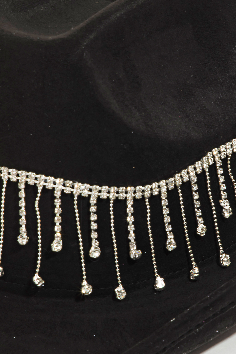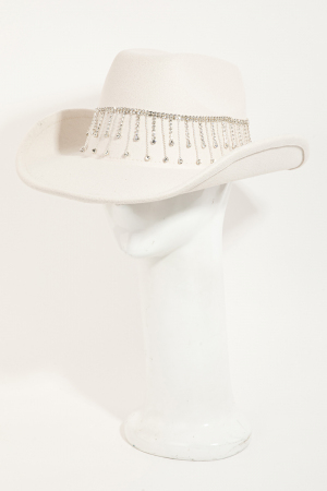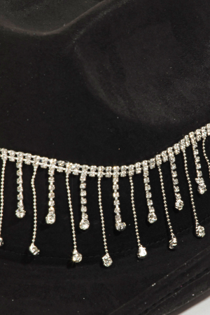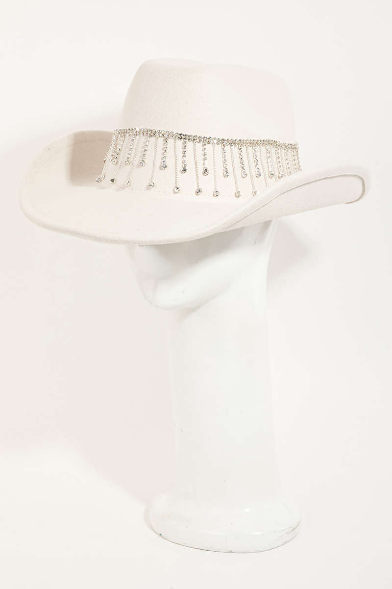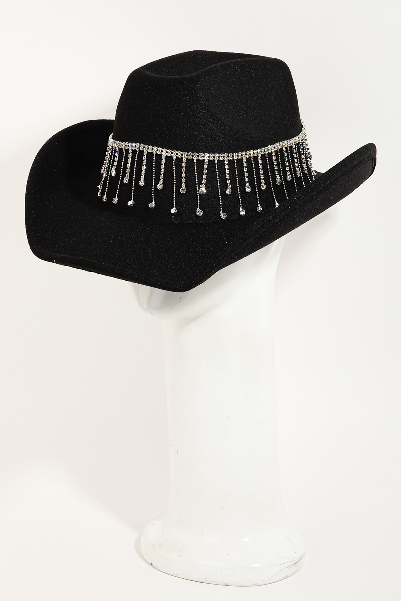 - This cowboy hat introduces a unique rhinestone studded chain fringe western style. Celebrate individuality with this cowboy hat that effortlessly expresses your unique sense of style.