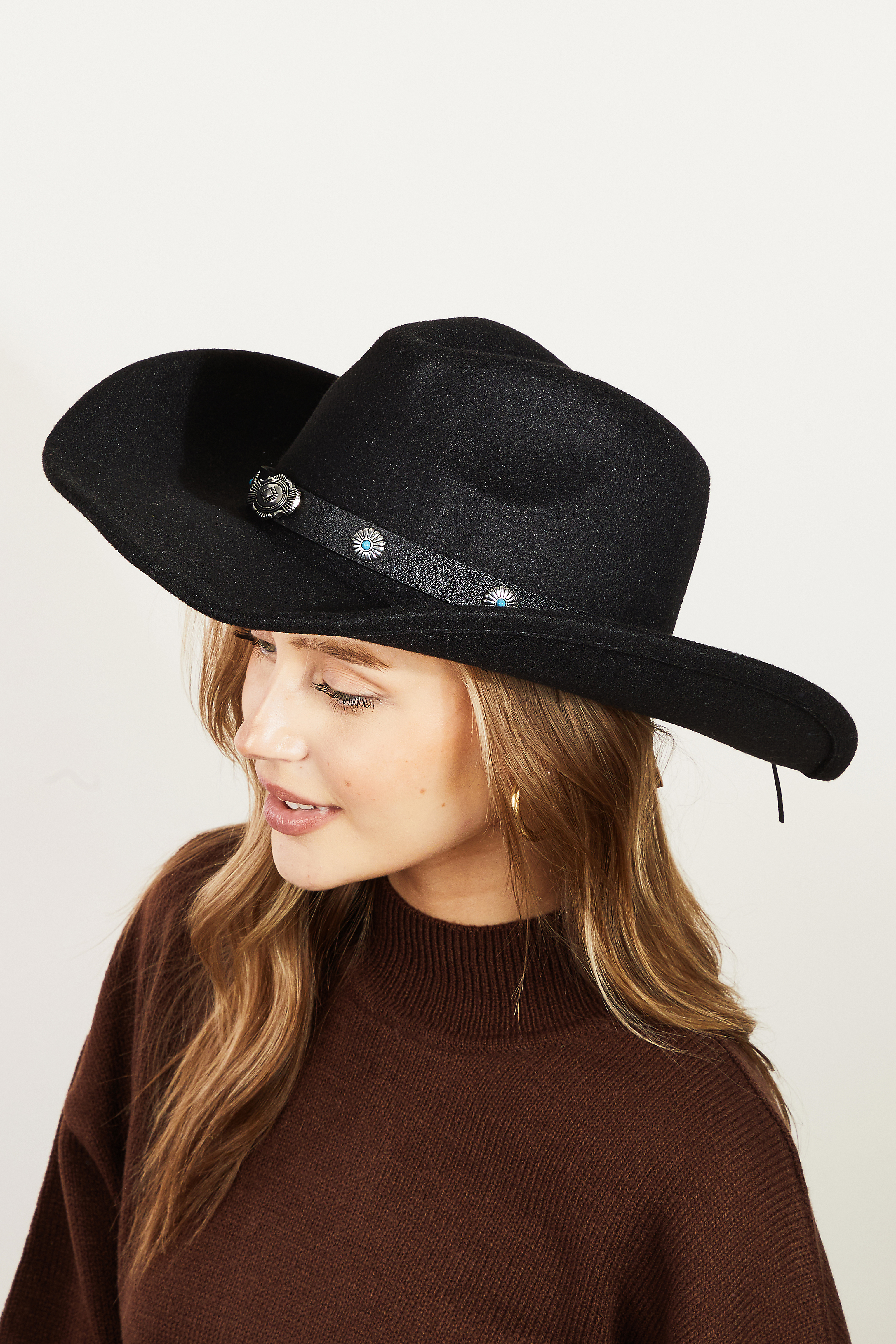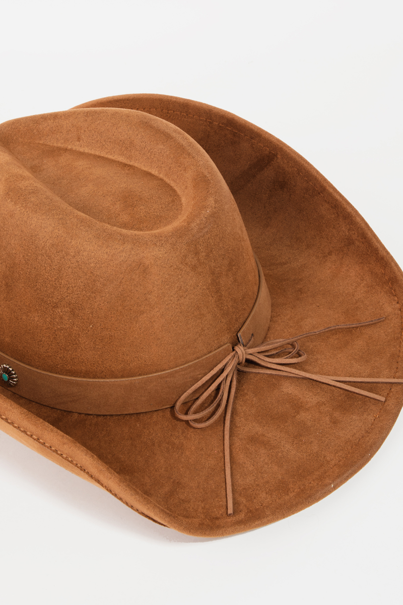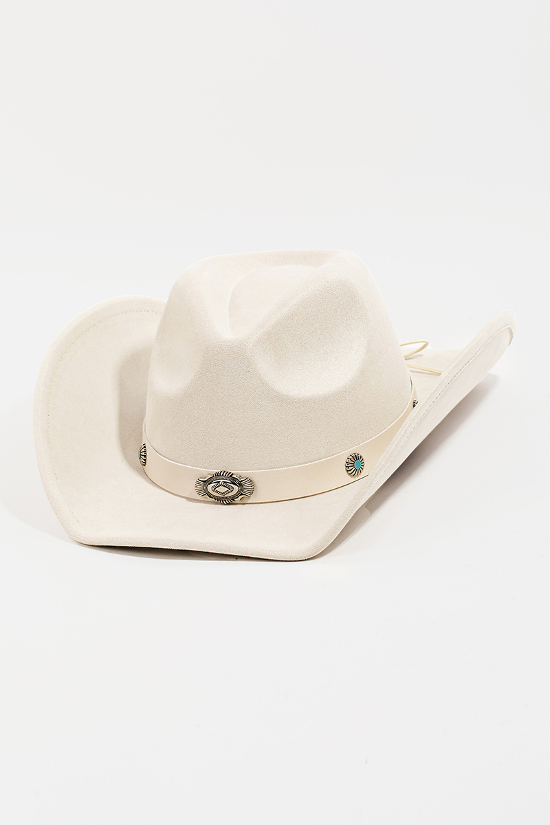 • This cowboy hat displays a fashionable studded ribbon strap western style. Step into a world of refined taste as this cowboy hat effortlessly refines the details of your outfit.