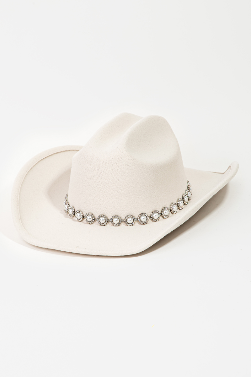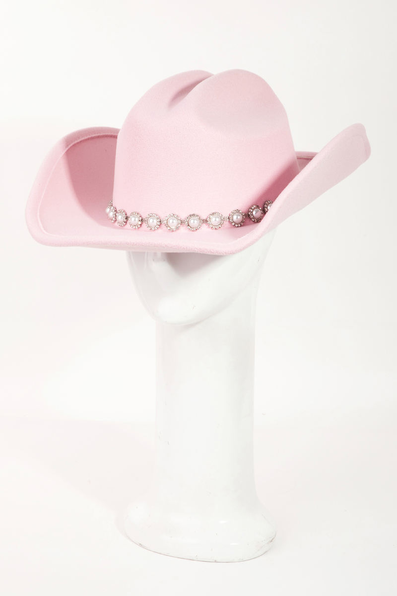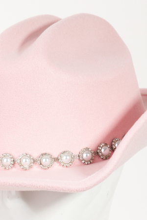 - This cowboy hat brings a unique pearl studded fashion style. Indulge in the artistry of accessorizing with this unique piece.