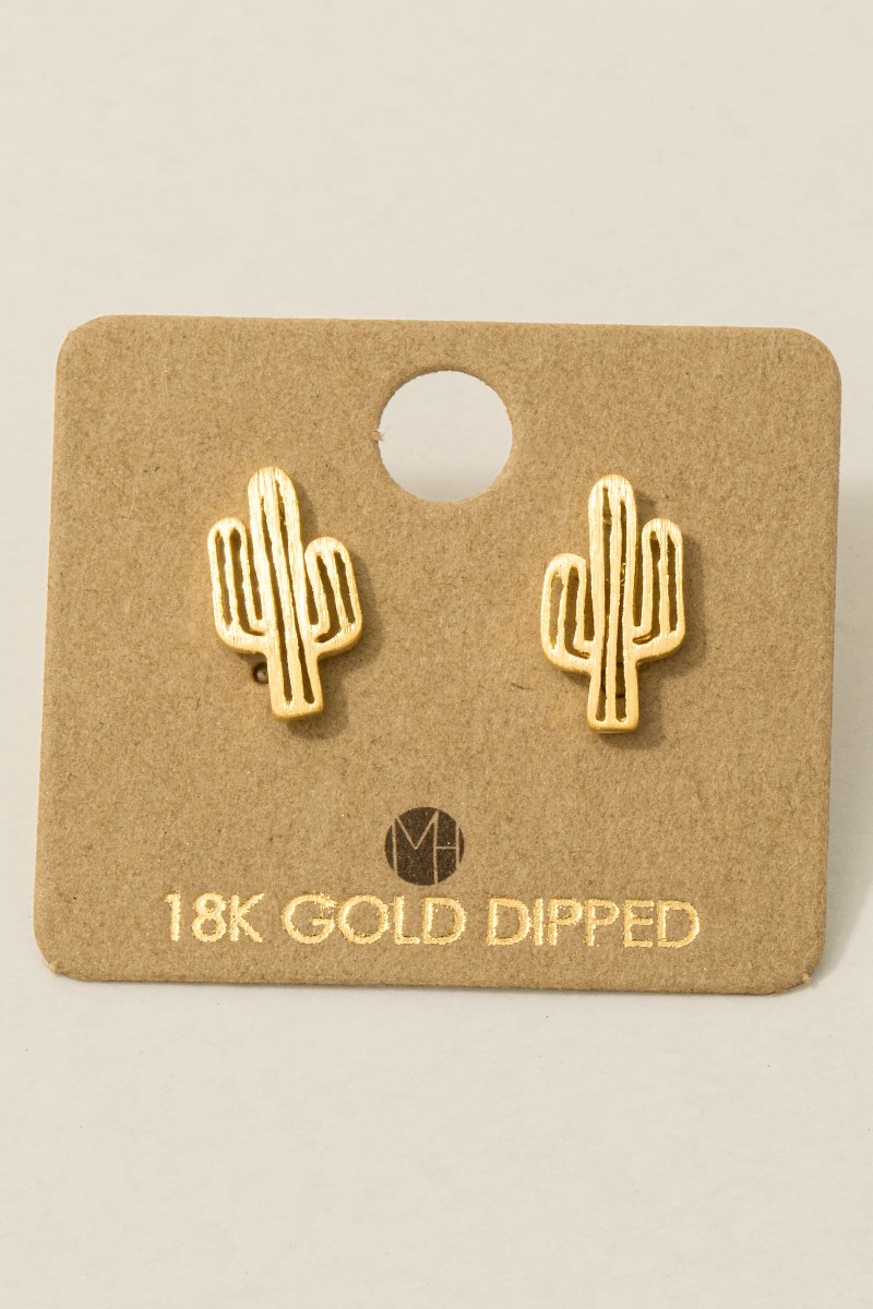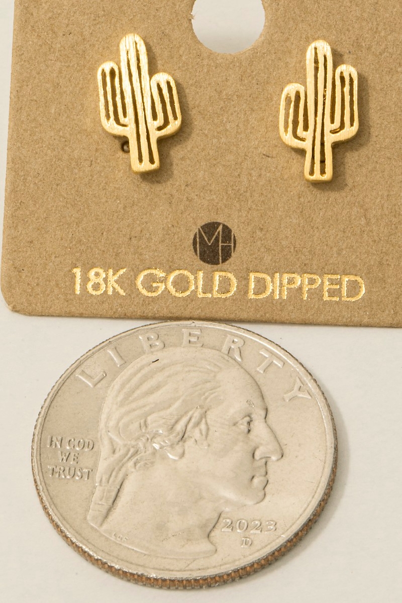 • This trending pair of earrings brings a unique gold dipped dainty desert cactus stud earrings style. Experience a burst of creativity in accessorizing as this piece effortlessly sets the tone for your unique style.