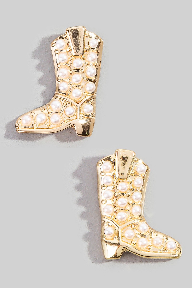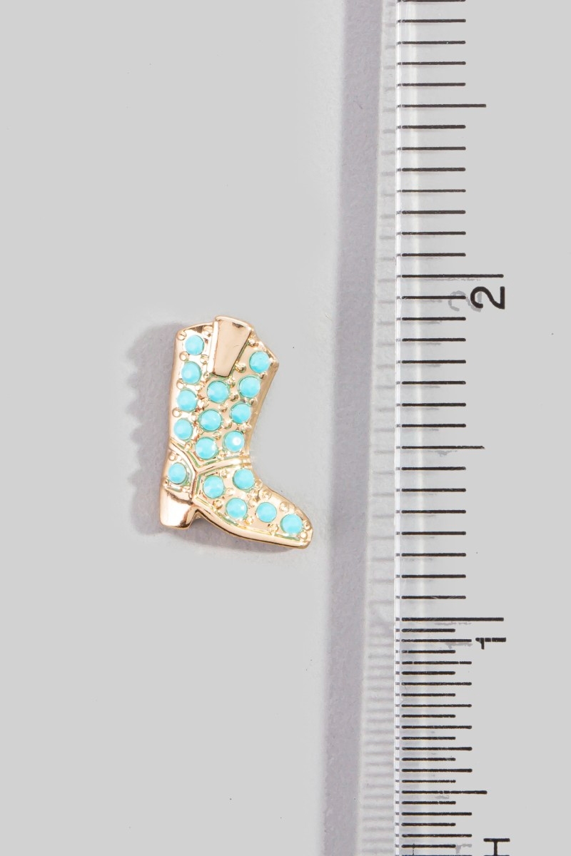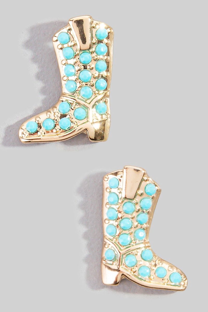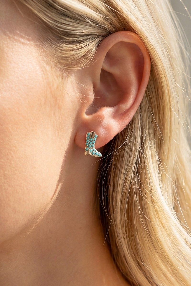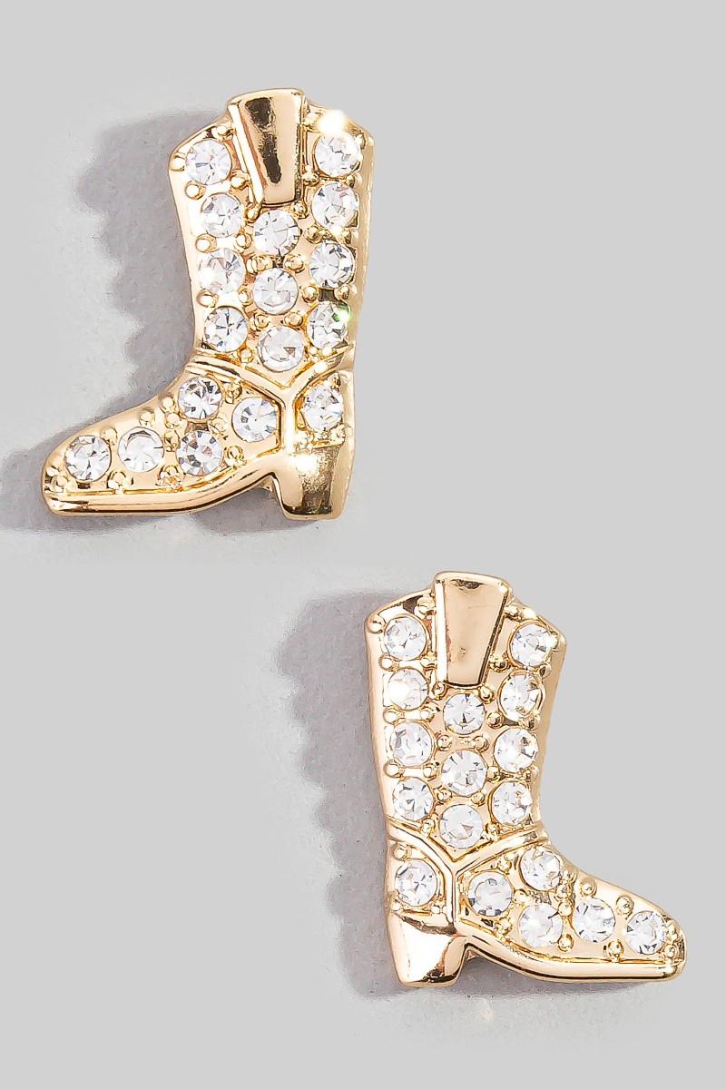 - This pair of stud earrings showcases a unique pave cowboy boots style. Experience a subtle blend of modernity and classic charm as this pair of stud earrings effortlessly adorns your ensemble.